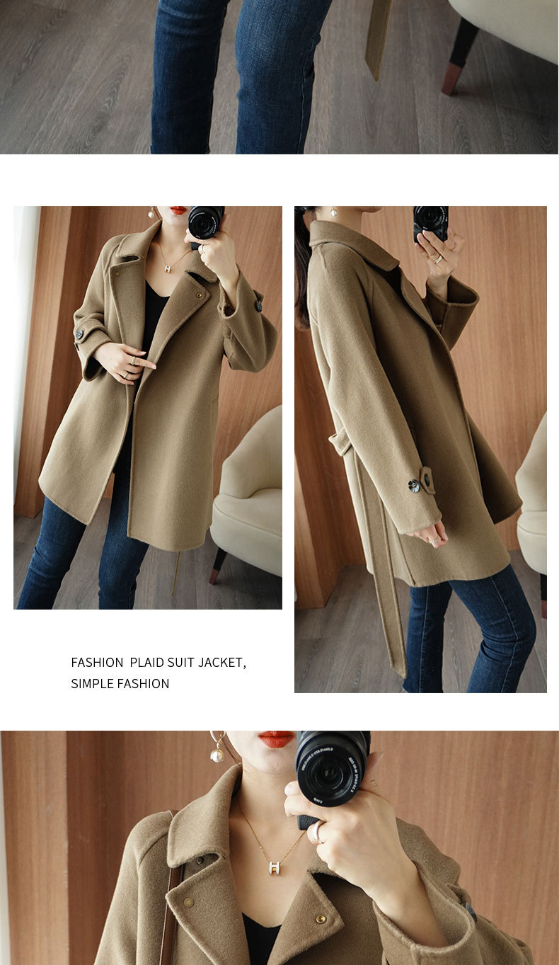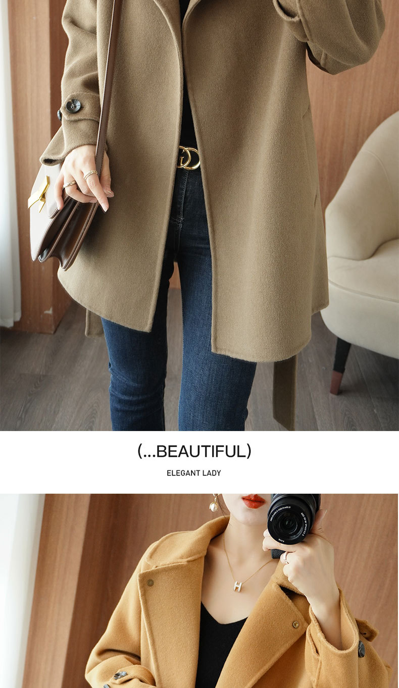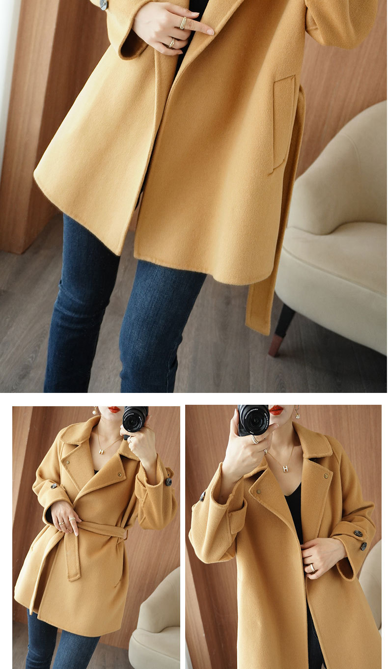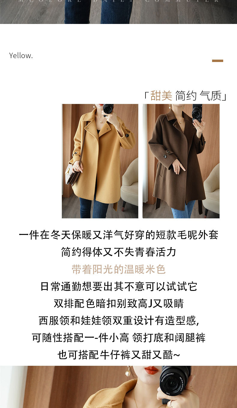 Áo khoác len 2 mặt màu vàng nữ dáng ngắn size nhỏ thu đông áo khoác len thắt eo eo áo khoác len bán buôn