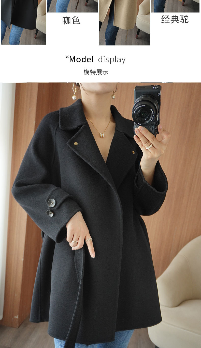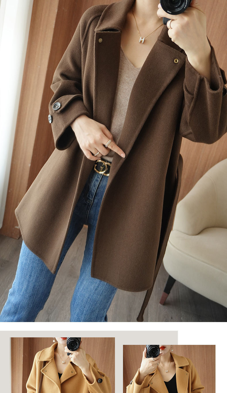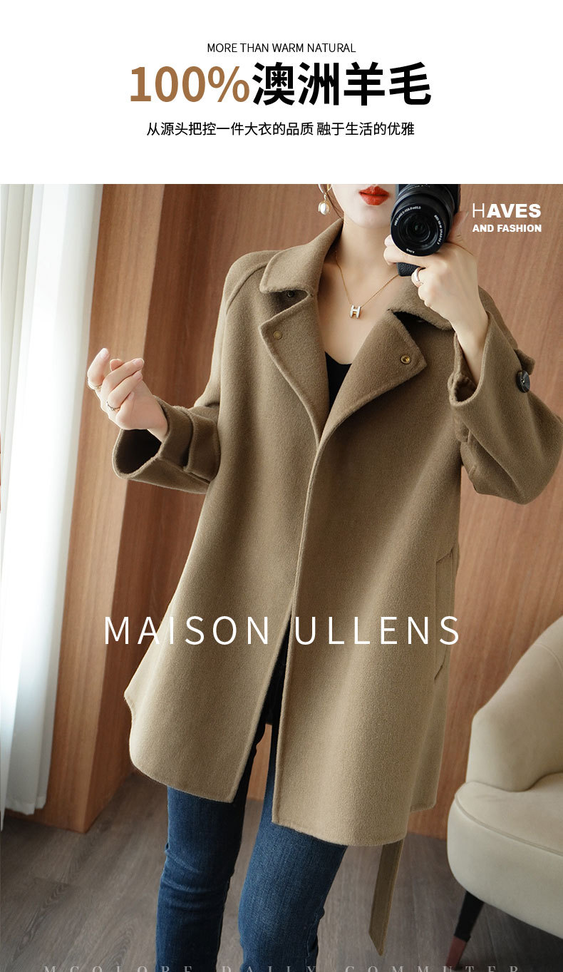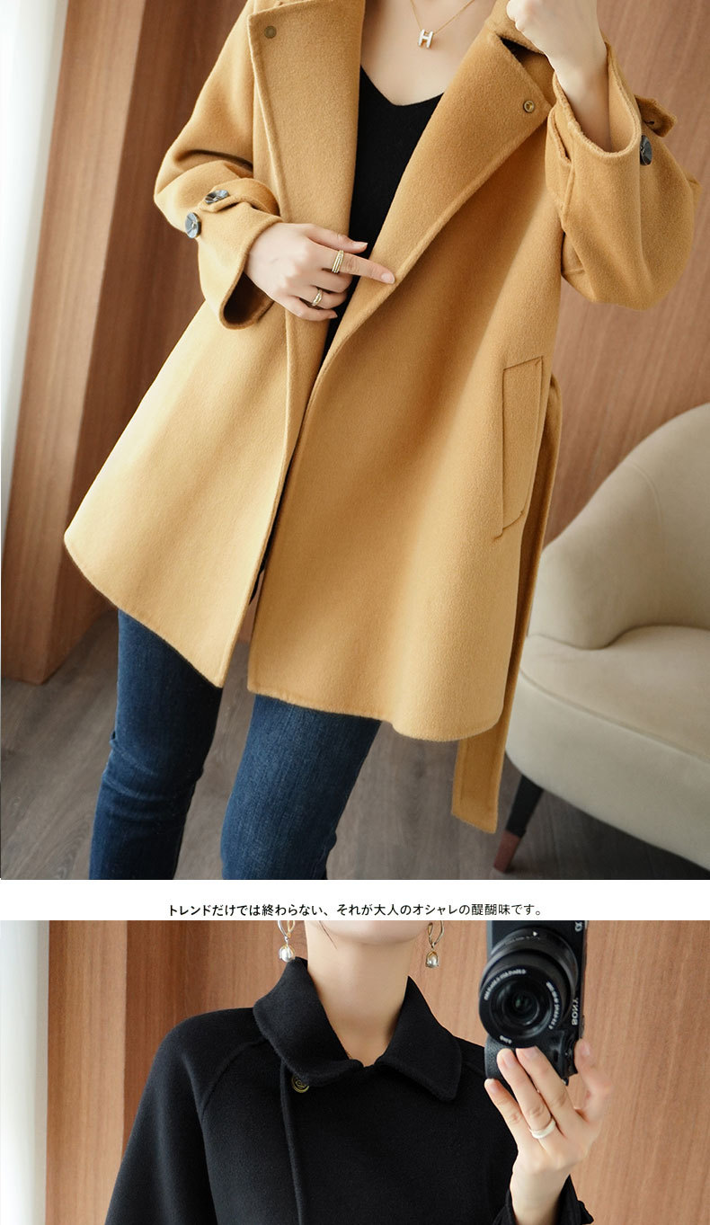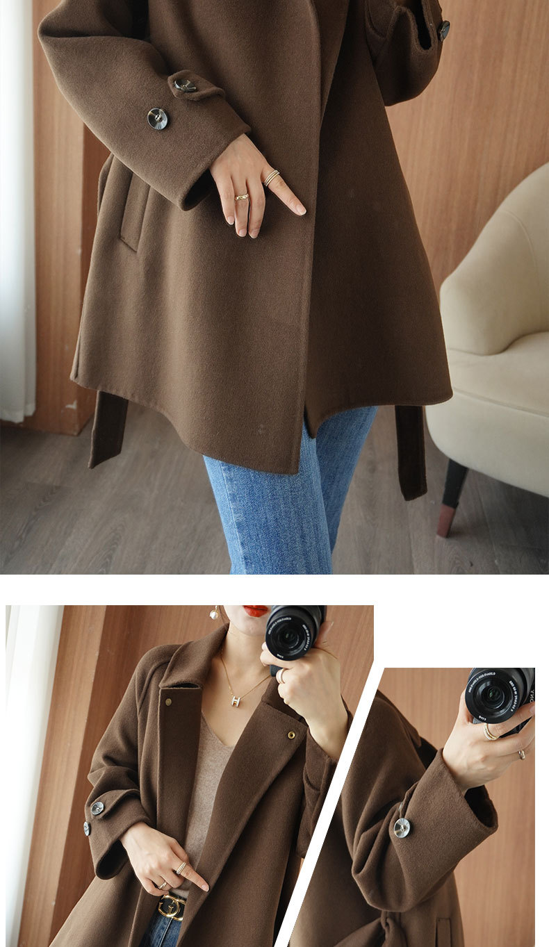 Áo khoác len 2 mặt màu vàng nữ dáng ngắn size nhỏ thu đông áo khoác len thắt eo eo áo khoác len bán buôn