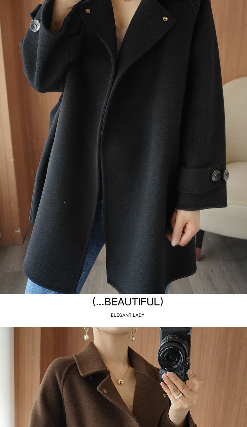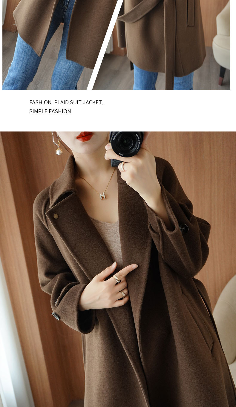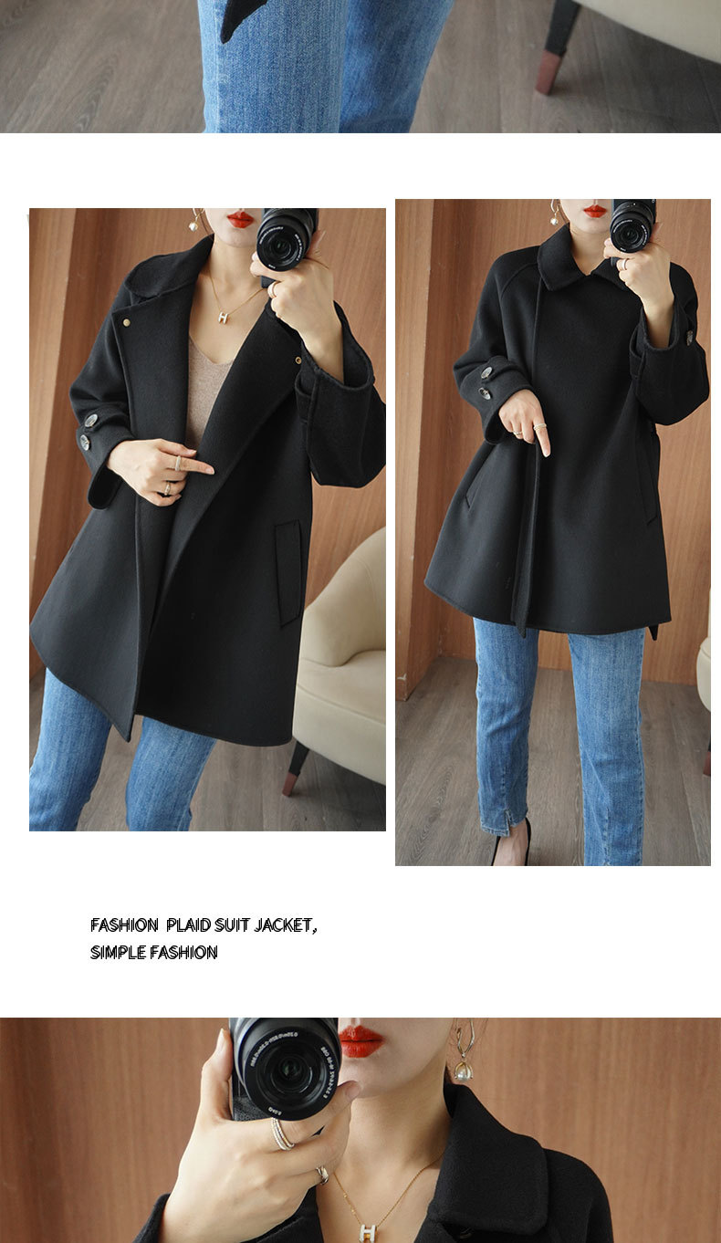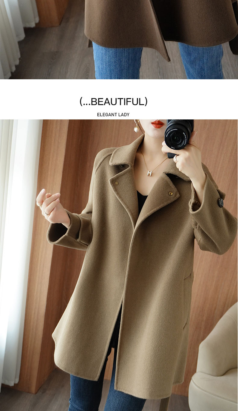Áo khoác len 2 mặt màu vàng nữ dáng ngắn size nhỏ thu đông áo khoác len thắt eo eo áo khoác len bán buôn
