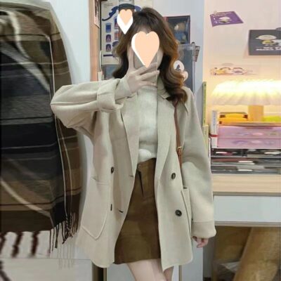 Áo khoác len cảm lông cừu 2 mặt xuân 2023 mới dáng rộng len hàn quốc ve áo nữ nhà sản xuất