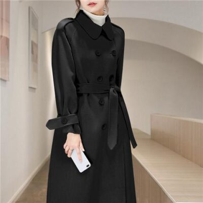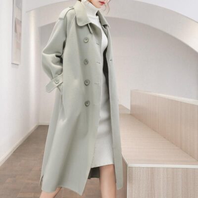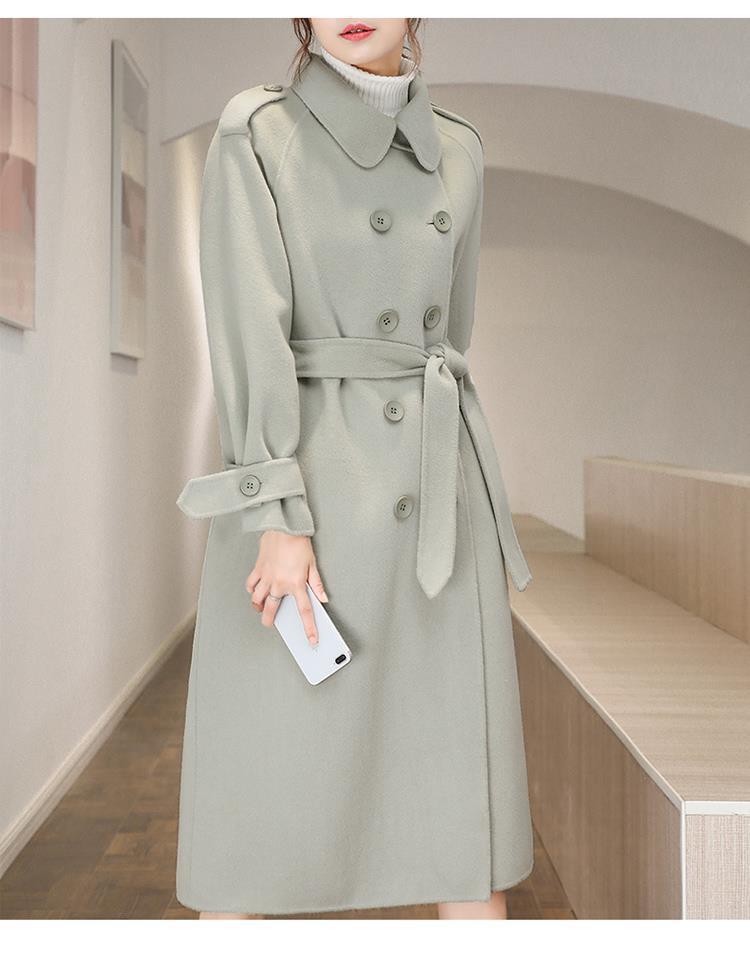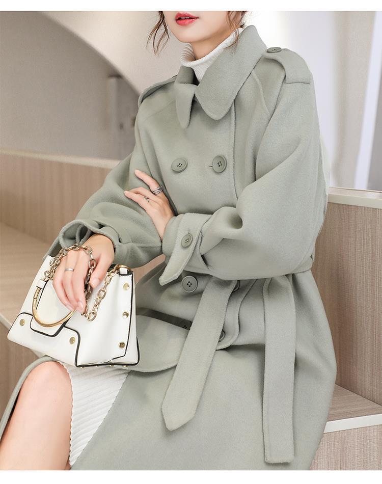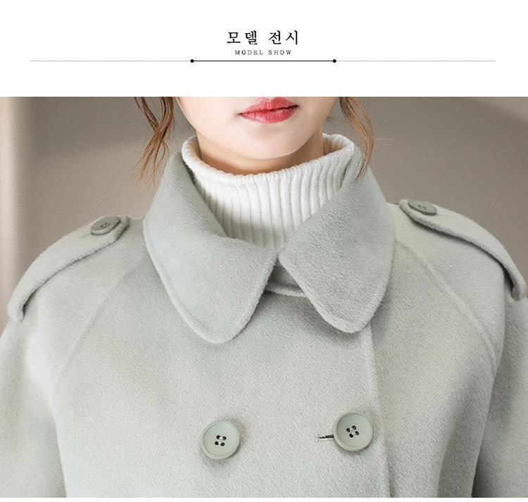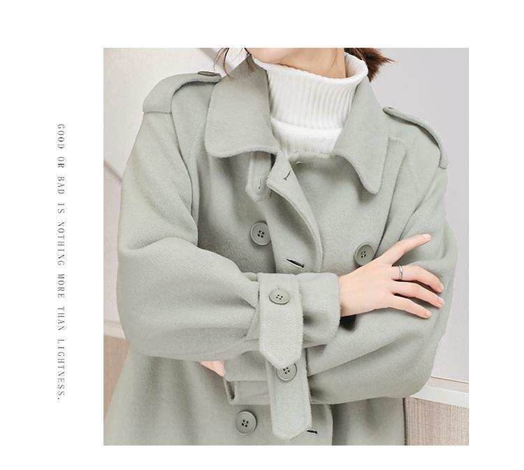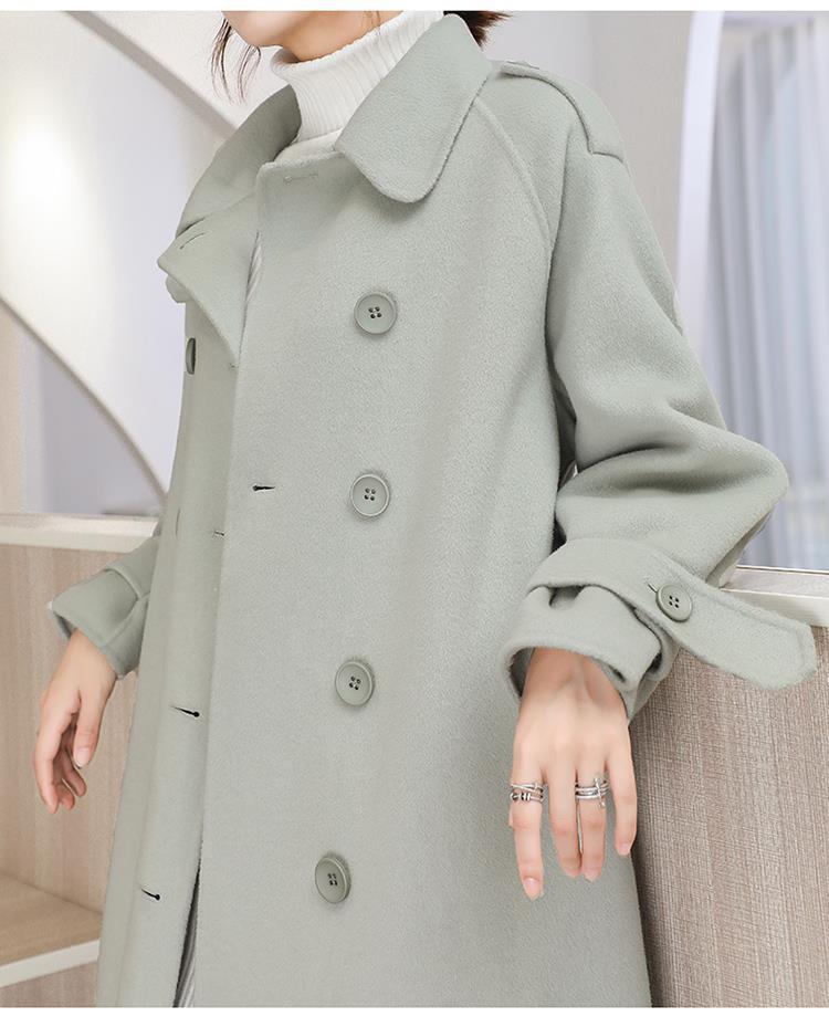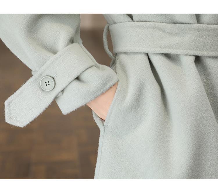 Áo khoác len cashmere hai mặt chống thông thoáng mùa thu dành cho nữ, áo khoác len thẳng dài qua đầu gối mới cho nữ