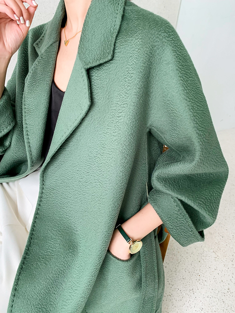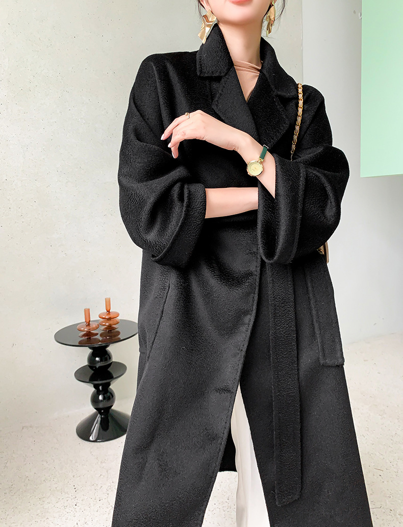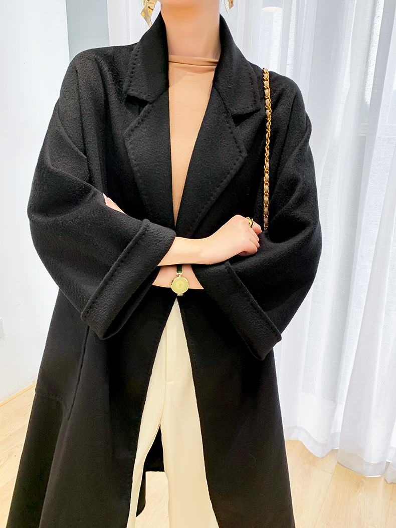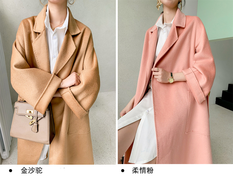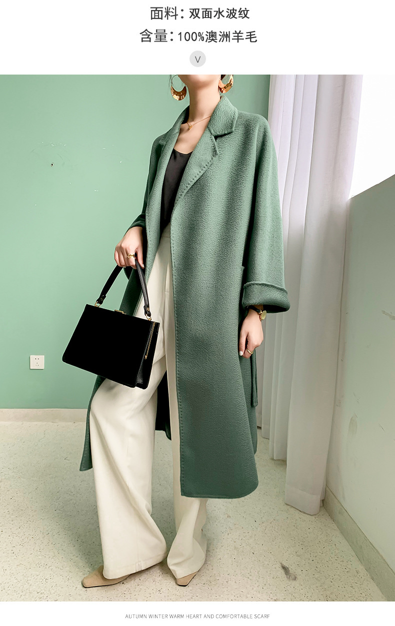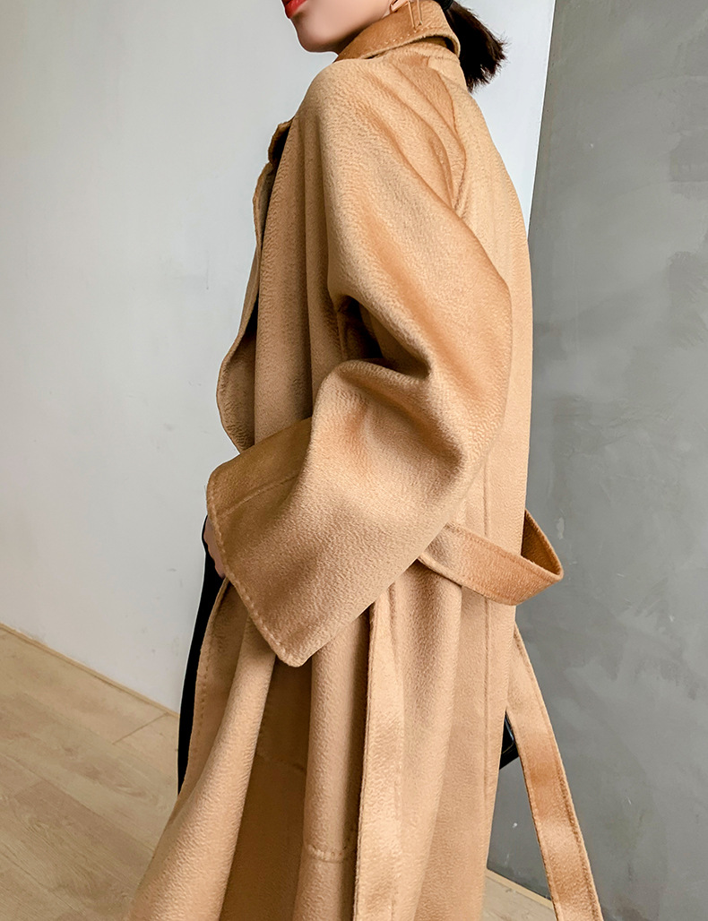 Áo khoác len cashmere hai mặt gợn sóng nước Max dài vừa phải cho nữ áo khoác len buộc dây phong cách Hàn Quốc