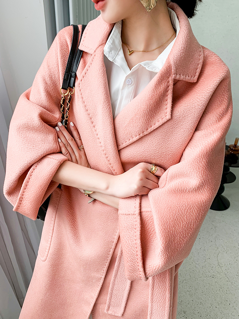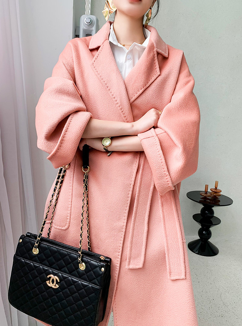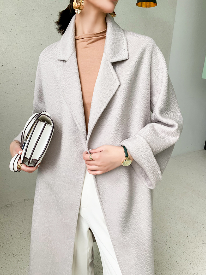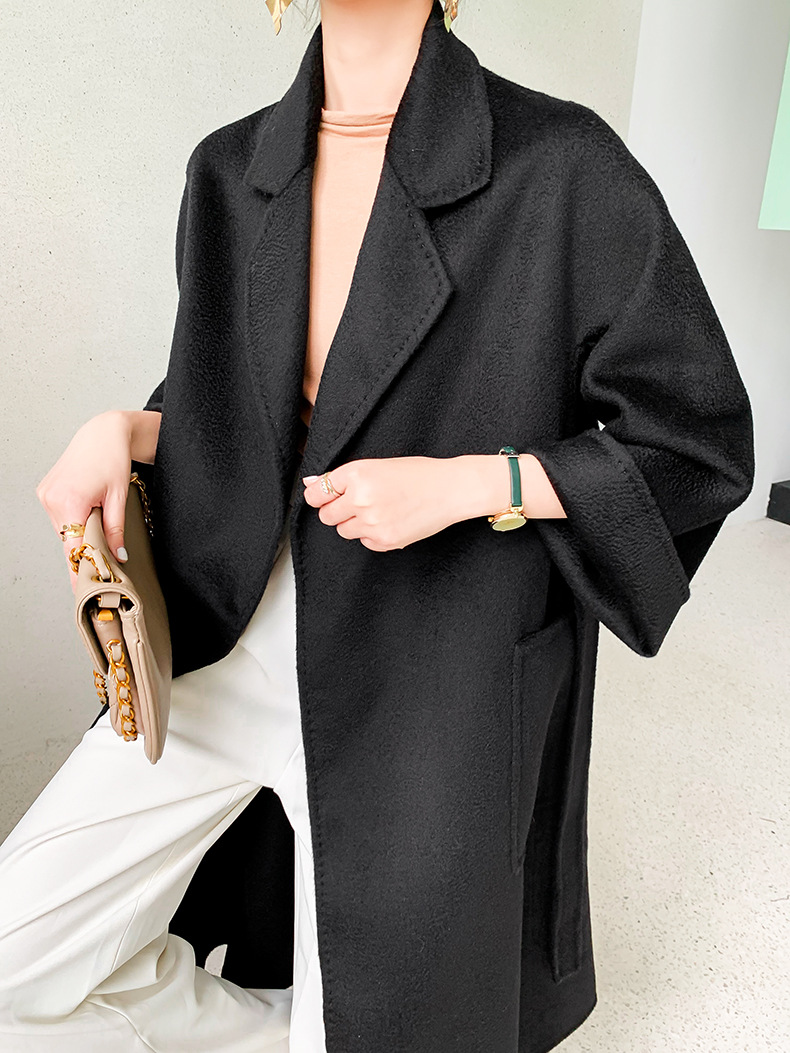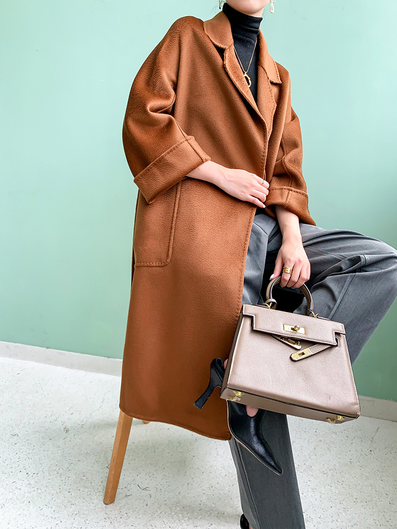 Áo khoác len cashmere hai mặt gợn sóng nước Max dài vừa phải cho nữ áo khoác len buộc dây phong cách Hàn Quốc