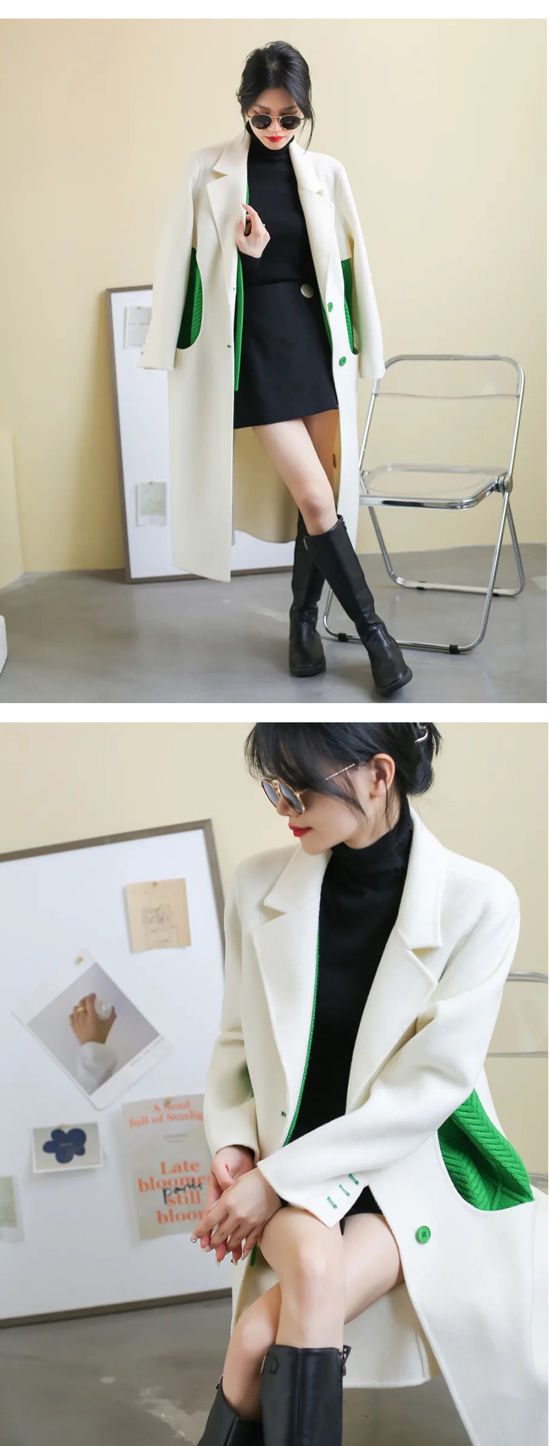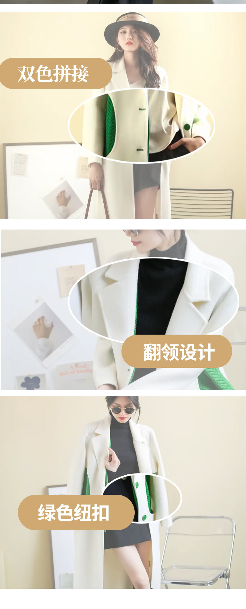 Áo khoác len cashmere hai mặt thủ công phong cách Hàn Quốc dài cao cấp Châu Âu ga nữ áo khoác cashmere nhà máy cung cấp trực tiếp