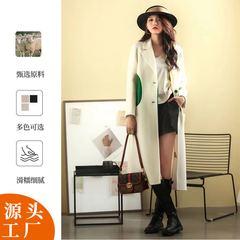 Áo khoác len cashmere hai mặt thủ công phong cách Hàn Quốc dài cao cấp Châu Âu ga nữ áo khoác cashmere nhà máy cung cấp trực tiếp