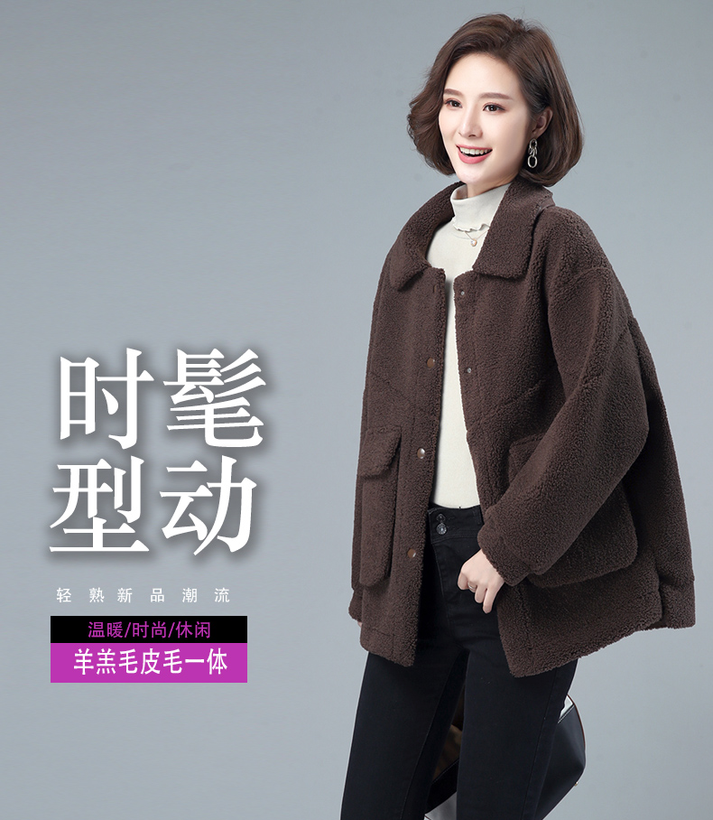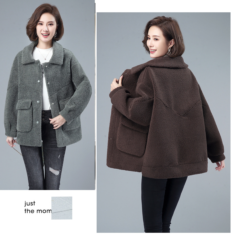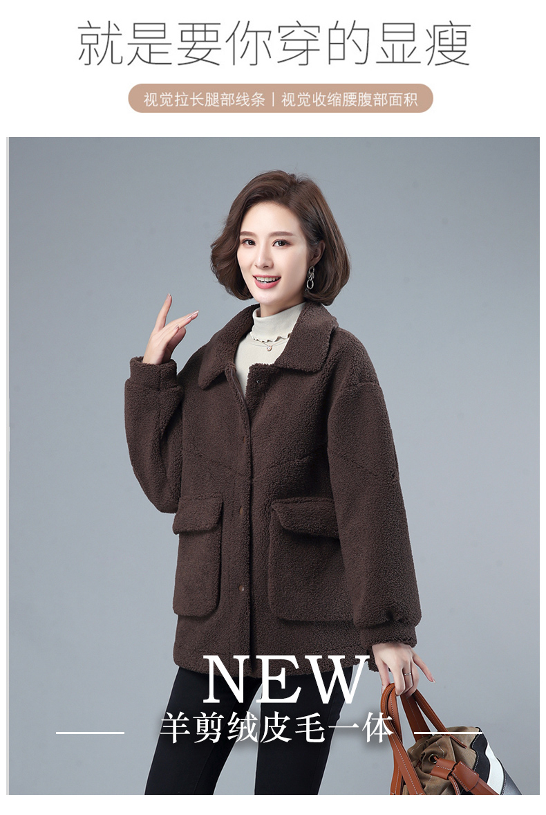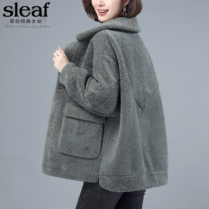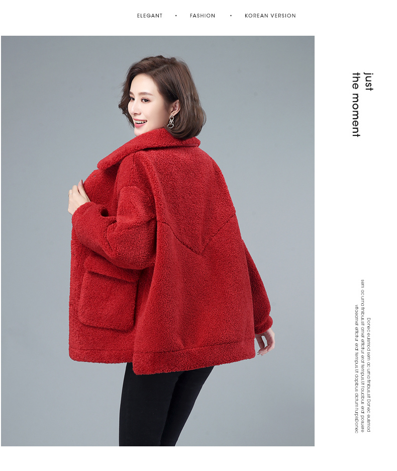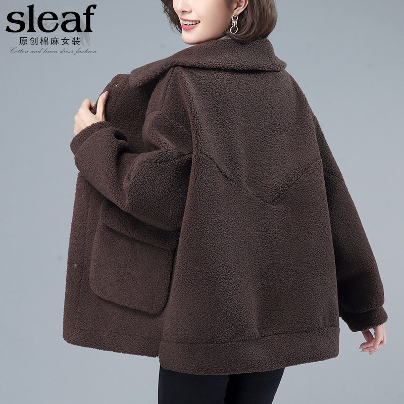 Áo khoác len cừu ngắn nữ quần áo thu đông phiên bản Hàn Quốc dáng rộng size lớn mẹ béo mm áo khoác lông cừu lông cừu