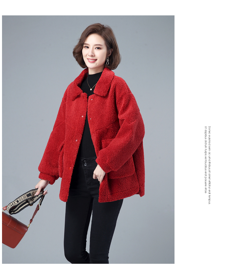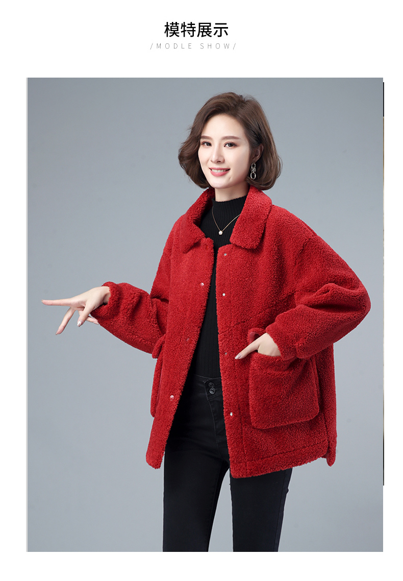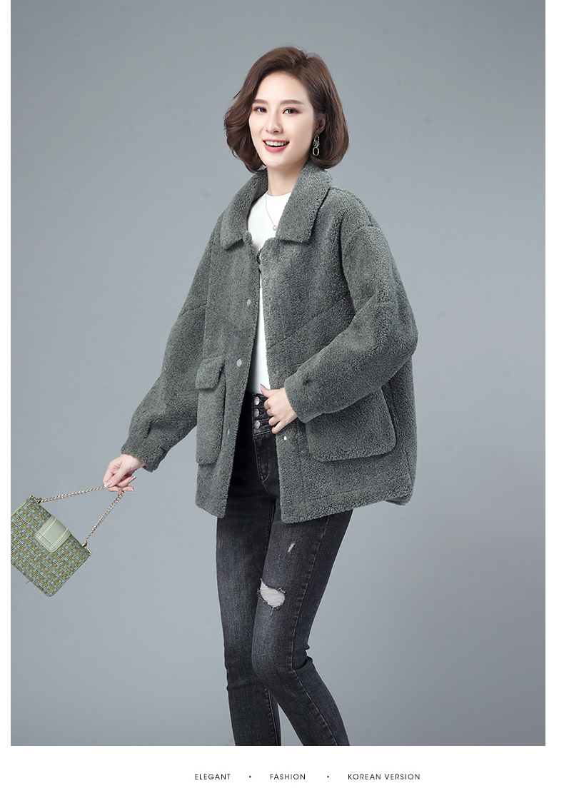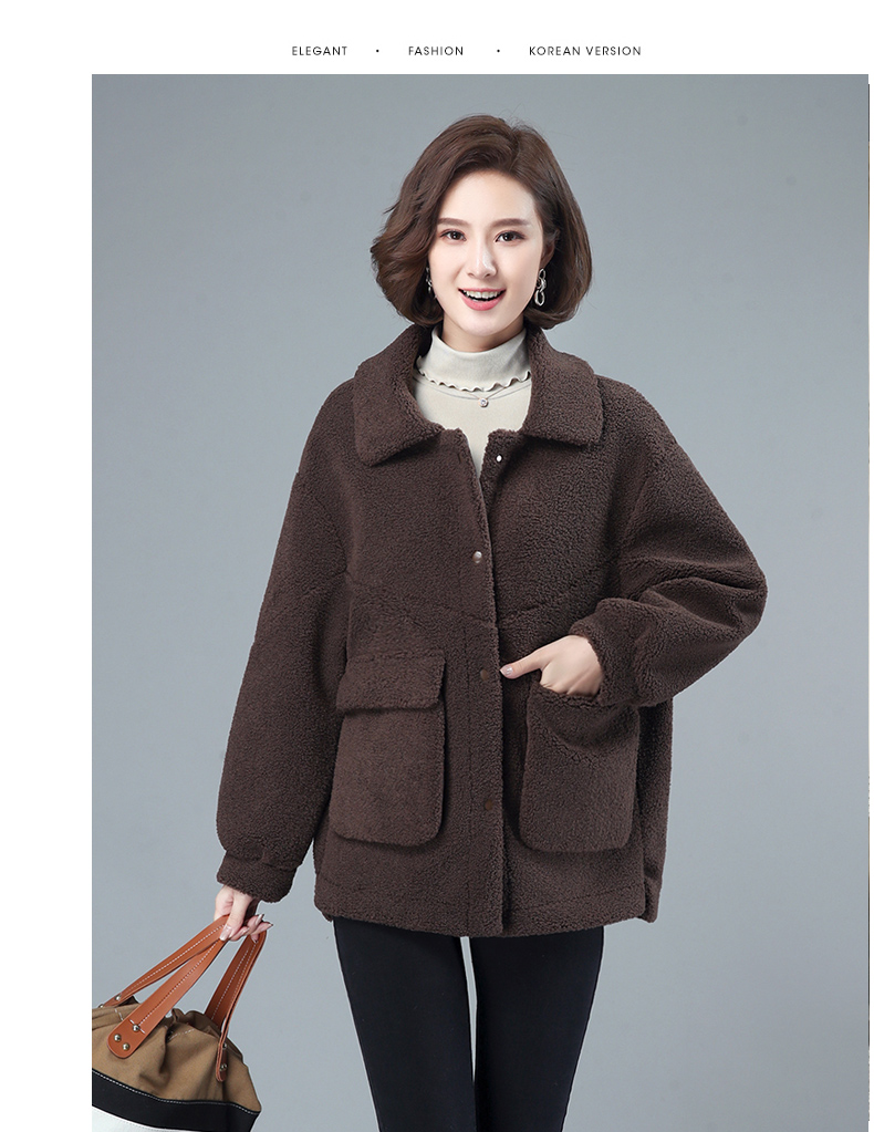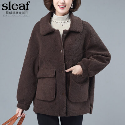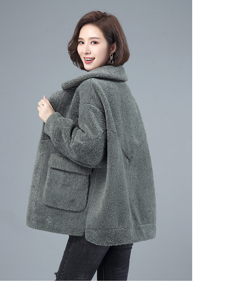 Áo khoác len cừu ngắn nữ quần áo thu đông phiên bản Hàn Quốc dáng rộng size lớn mẹ béo mm áo khoác lông cừu lông cừu