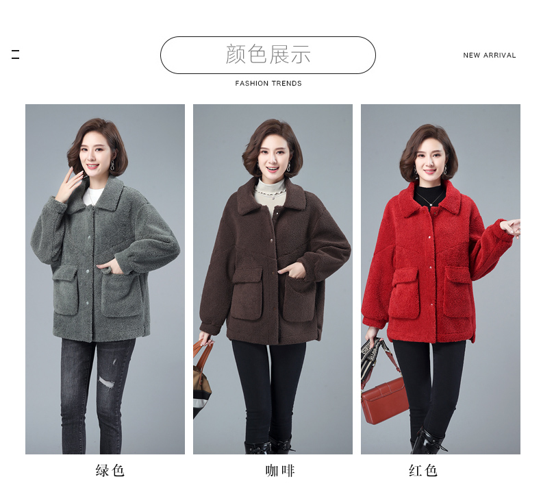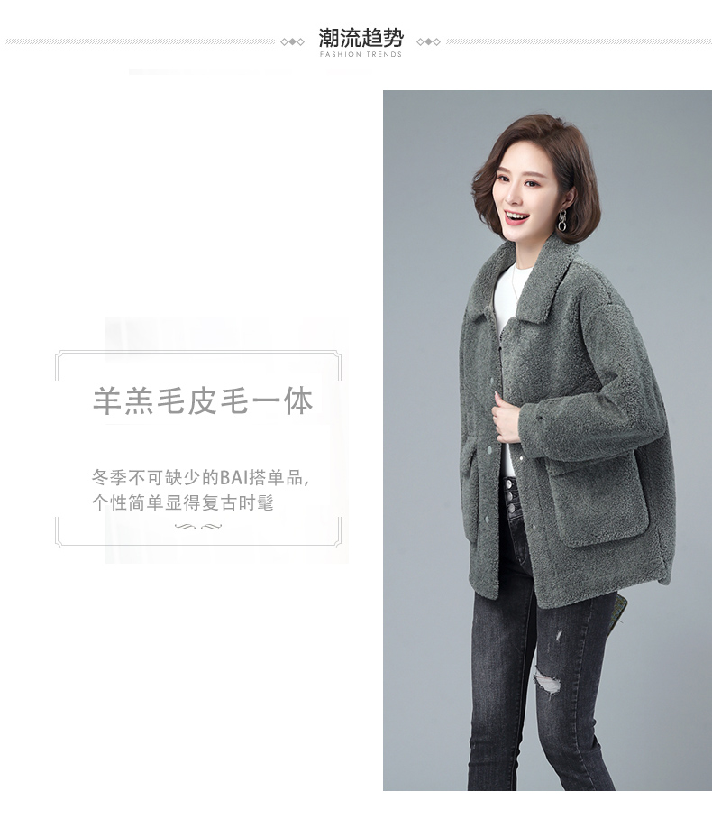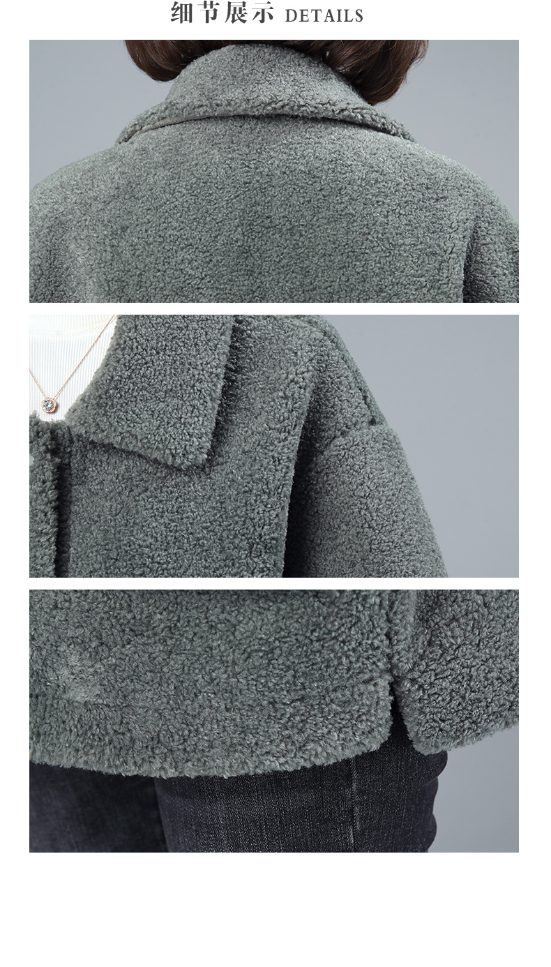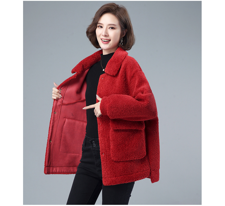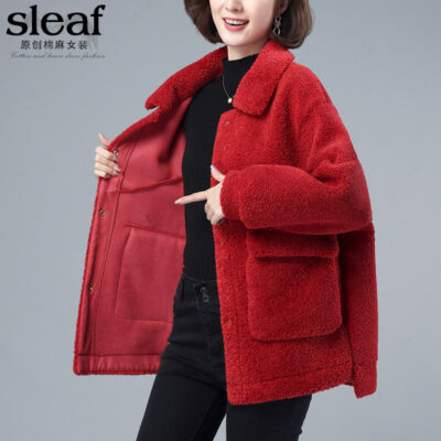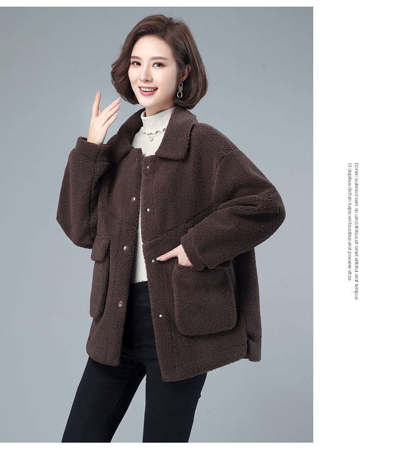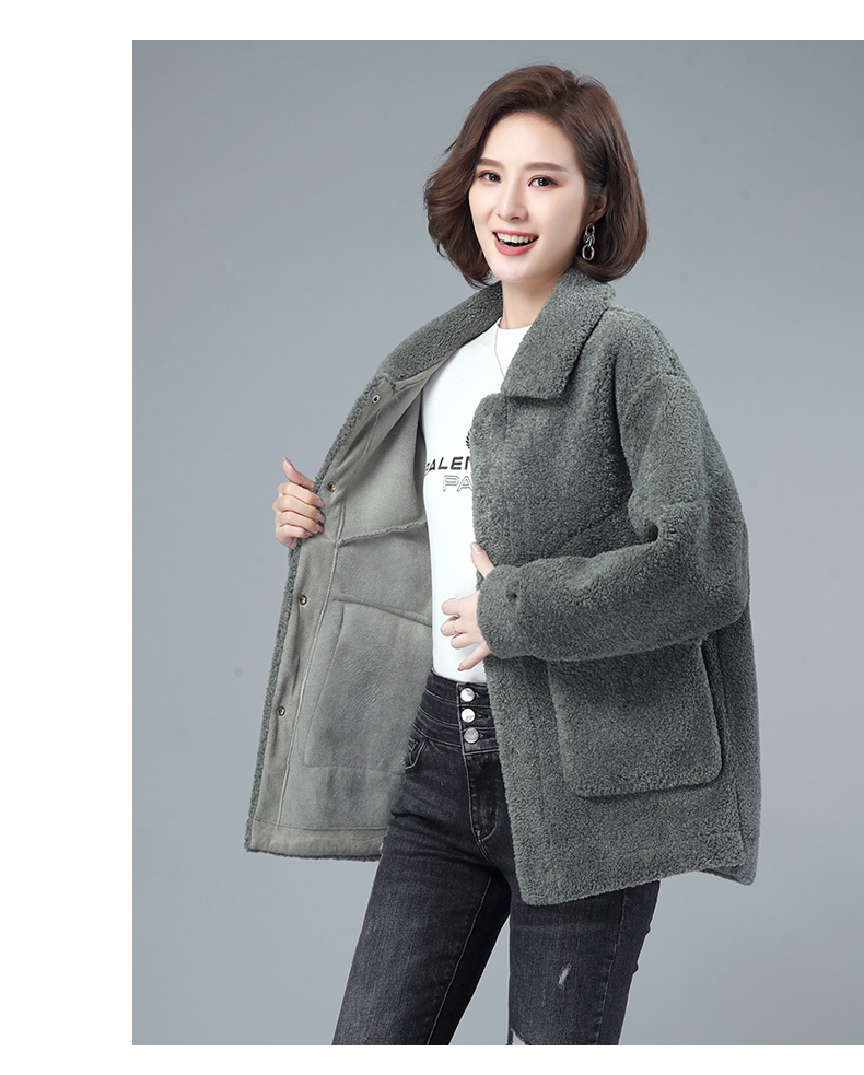 Áo khoác len cừu ngắn nữ quần áo thu đông phiên bản Hàn Quốc dáng rộng size lớn mẹ béo mm áo khoác lông cừu lông cừu