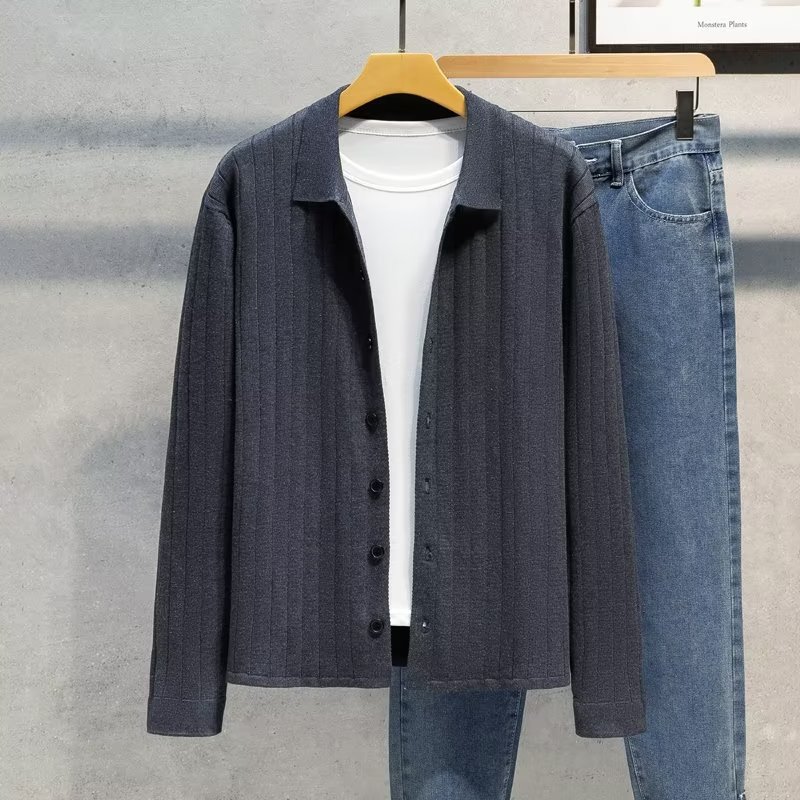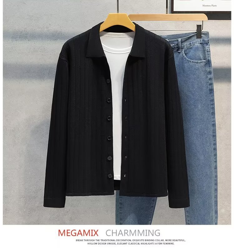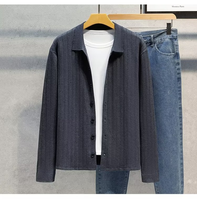Áo khoác len dệt kim có ve áo phong cách nhẹ nhàng và quen thuộc cho nam giới mùa xuân và mùa thu 2022 áo khoác mỏng Dongdaemun phiên bản Hàn Quốc