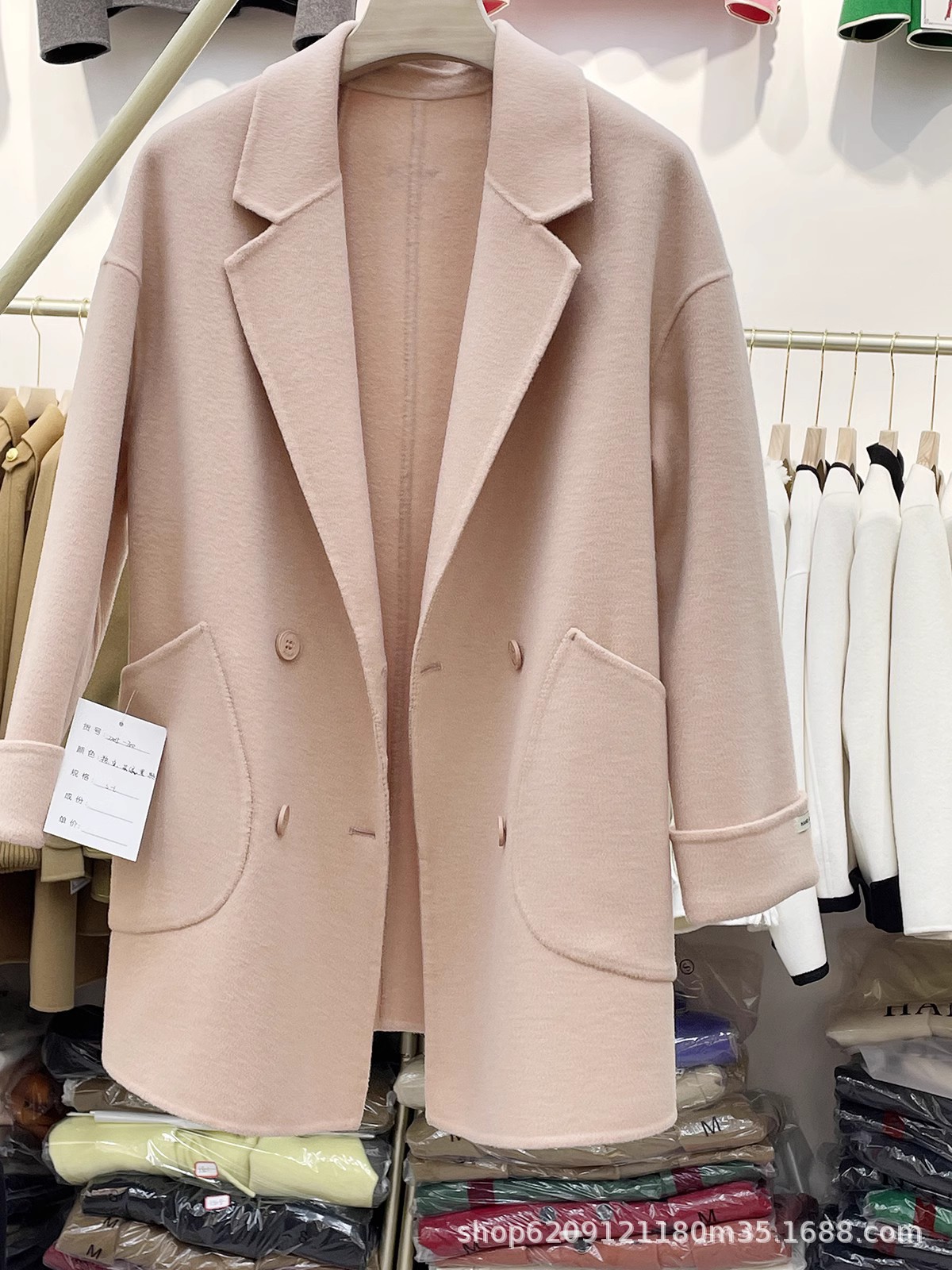 Áo khoác len hai mặt 2023 mới ve áo rời phiên bản Hàn Quốc áo khoác mỏng thu đông nữ 4 màu