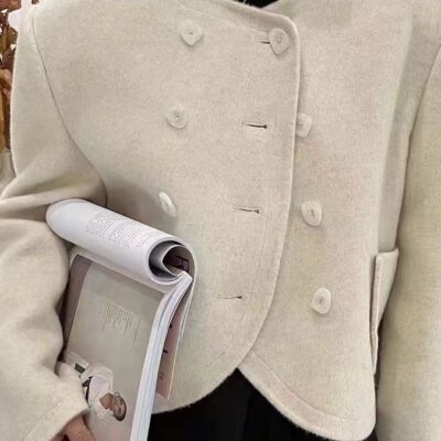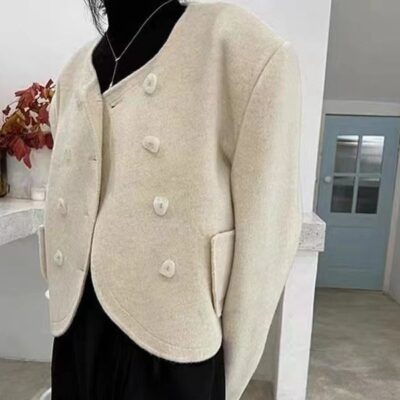 Áo khoác len hai mặt cổ tròn mới cho nữ cảm giác cao cấp nhỏ được may bằng tay cho nữ mùa thu đông