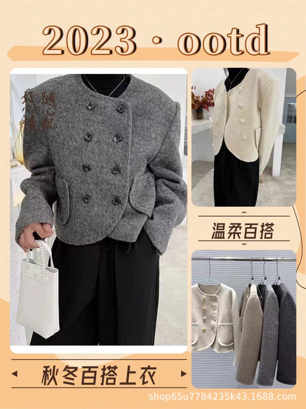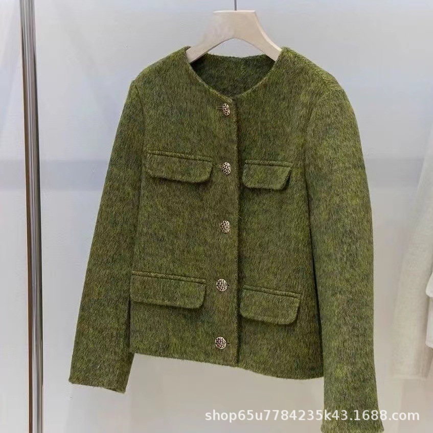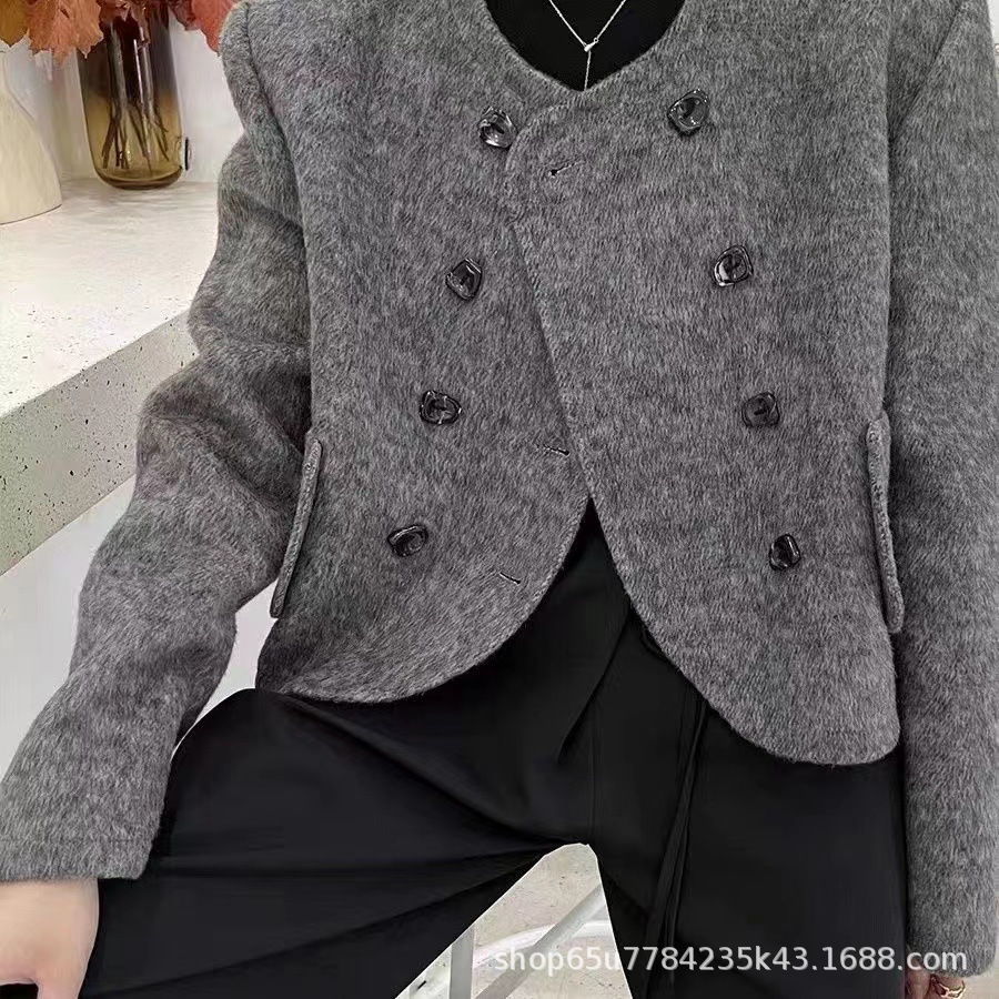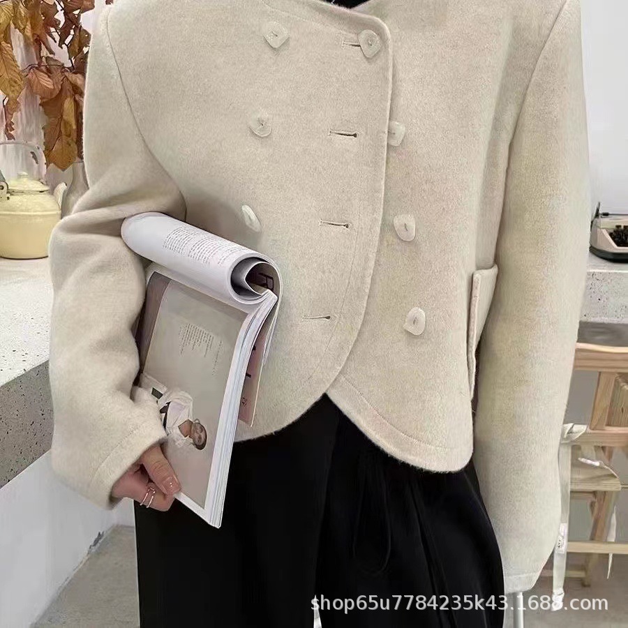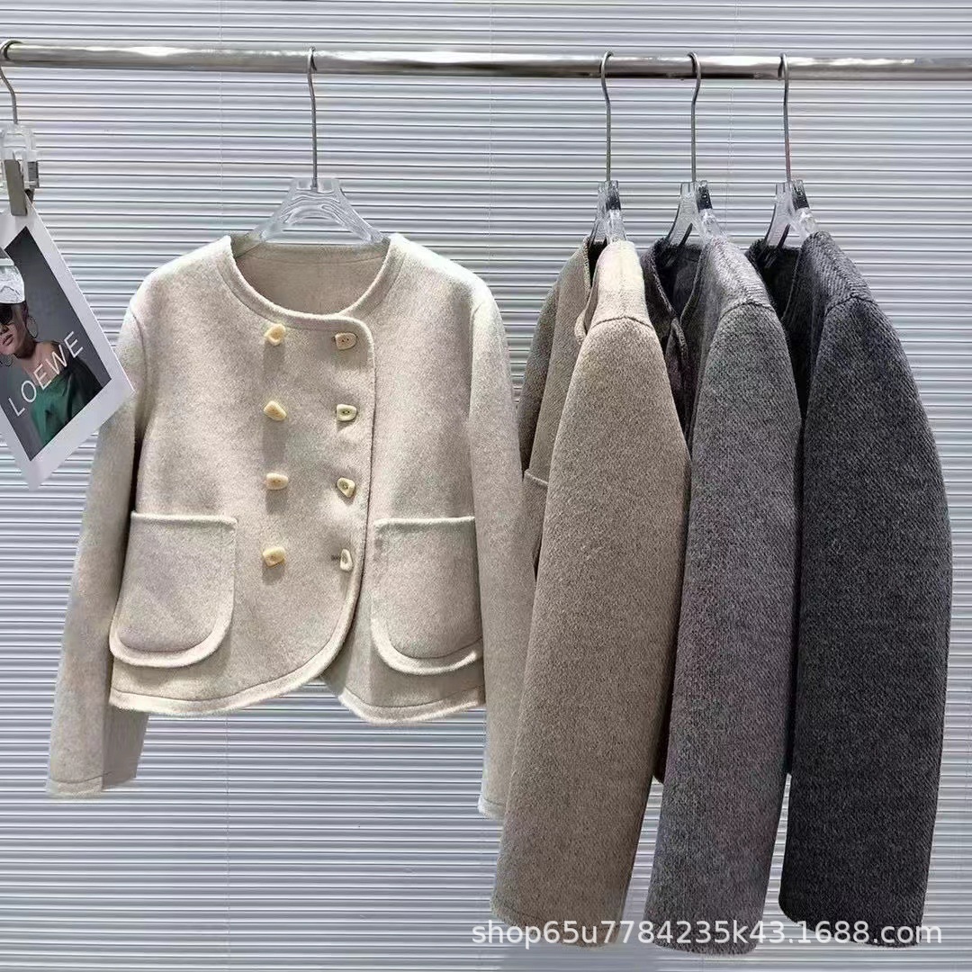 Áo khoác len hai mặt cổ tròn mới cho nữ cảm giác cao cấp nhỏ được may bằng tay cho nữ mùa thu đông