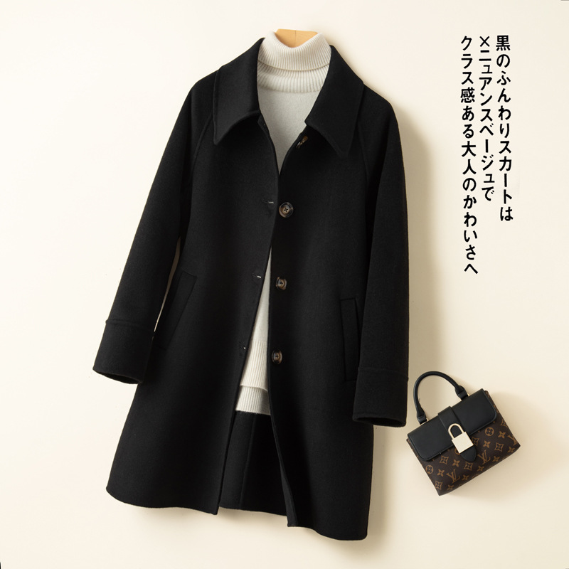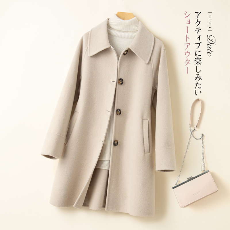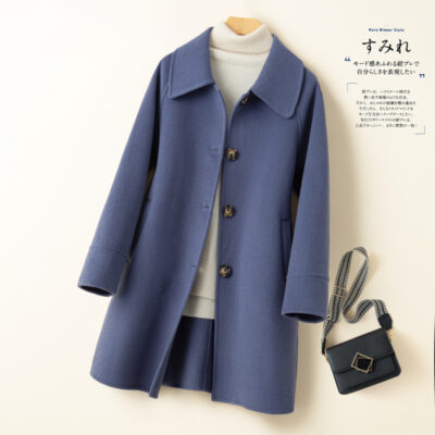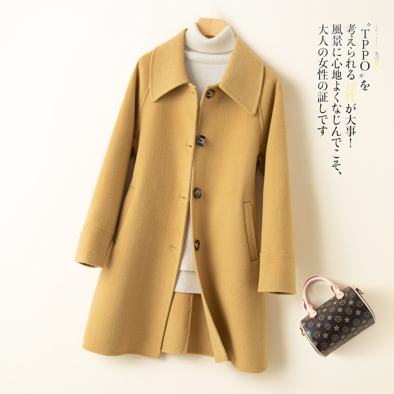 Áo khoác len hai mặt nữ 2023 mới trung dài cao cấp búp bê cổ áo thời trang giảm tuổi Áo khoác len nữ
