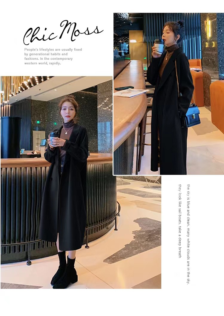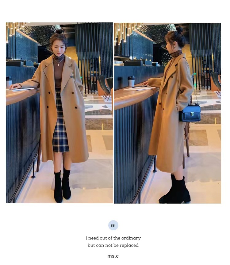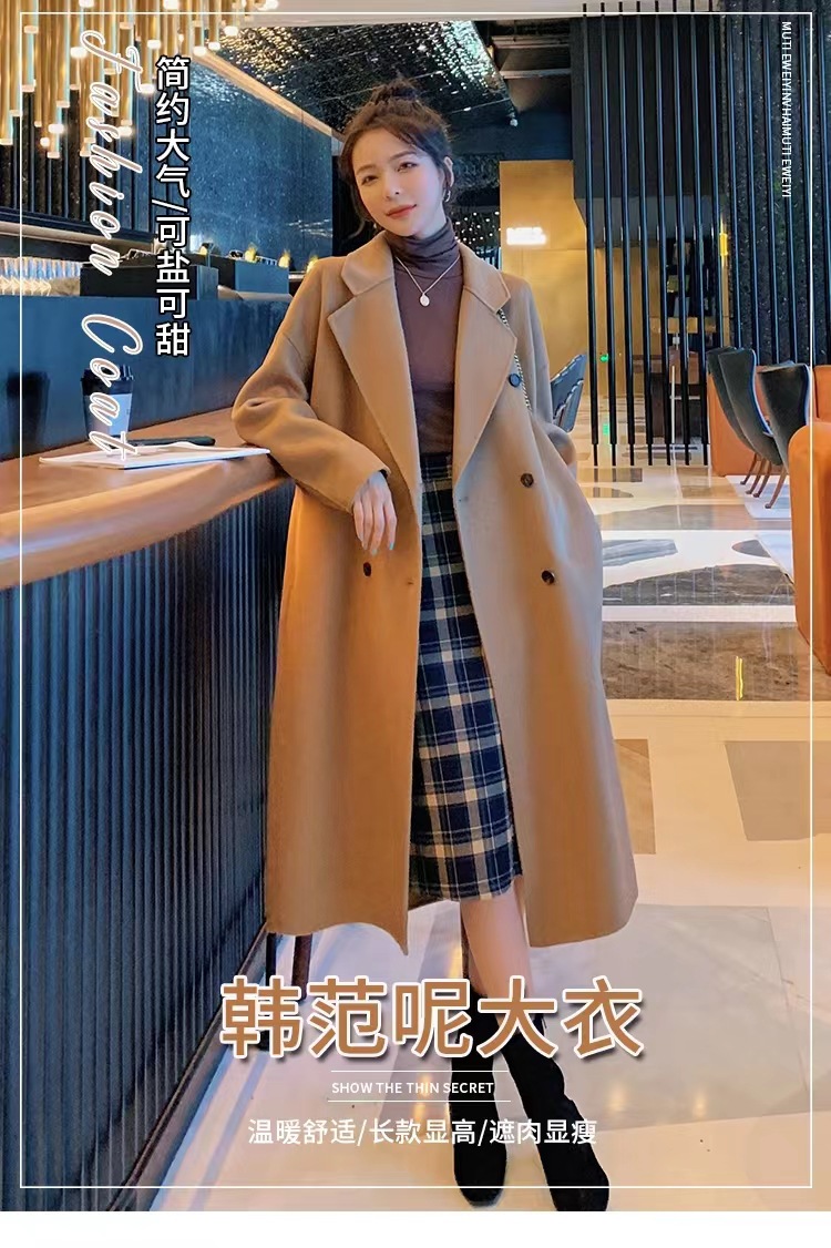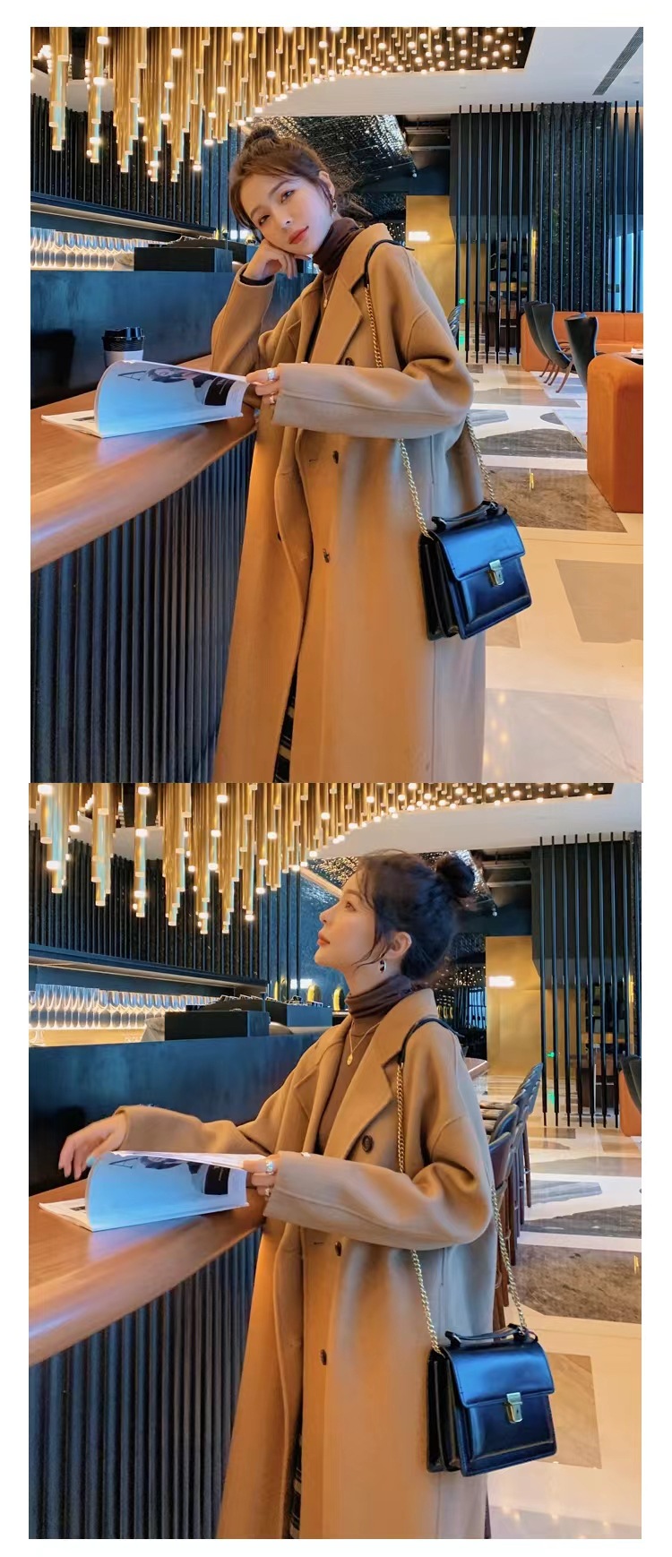 Áo khoác len hai mặt nữ cỡ lớn hơi mập mm khí chất cao cấp thu đông dài qua đầu gối áo khoác len