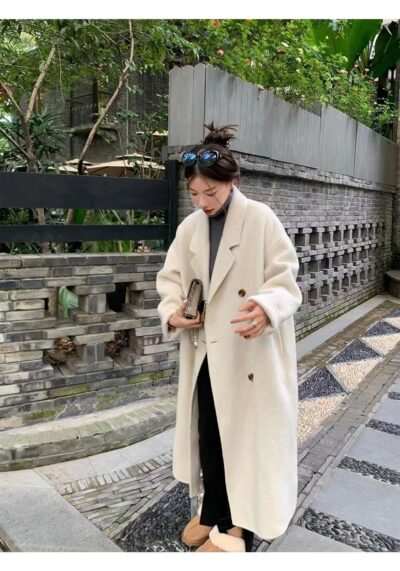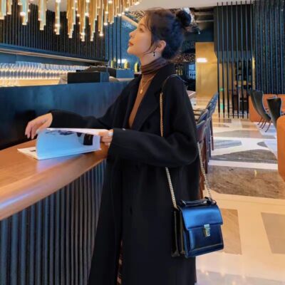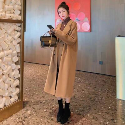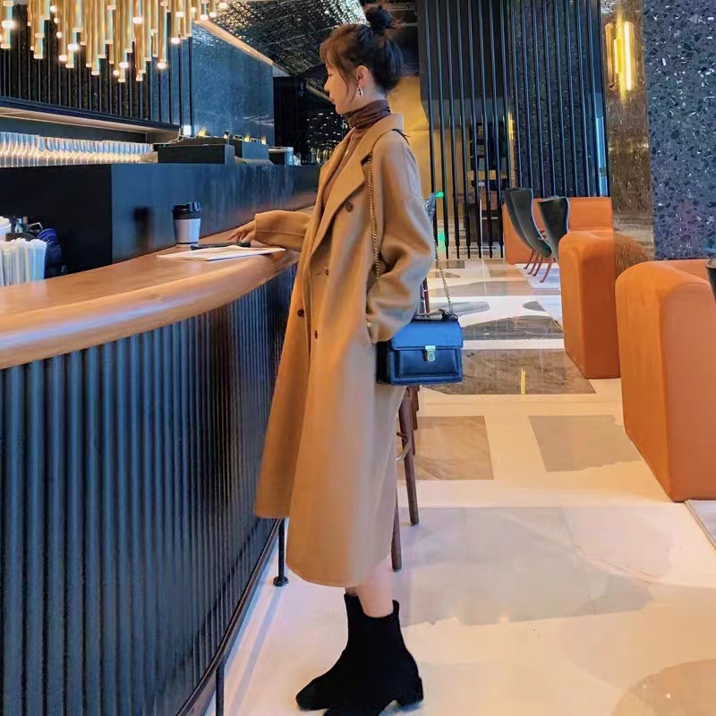 Áo khoác len hai mặt nữ cỡ lớn hơi mập mm khí chất cao cấp thu đông dài qua đầu gối áo khoác len