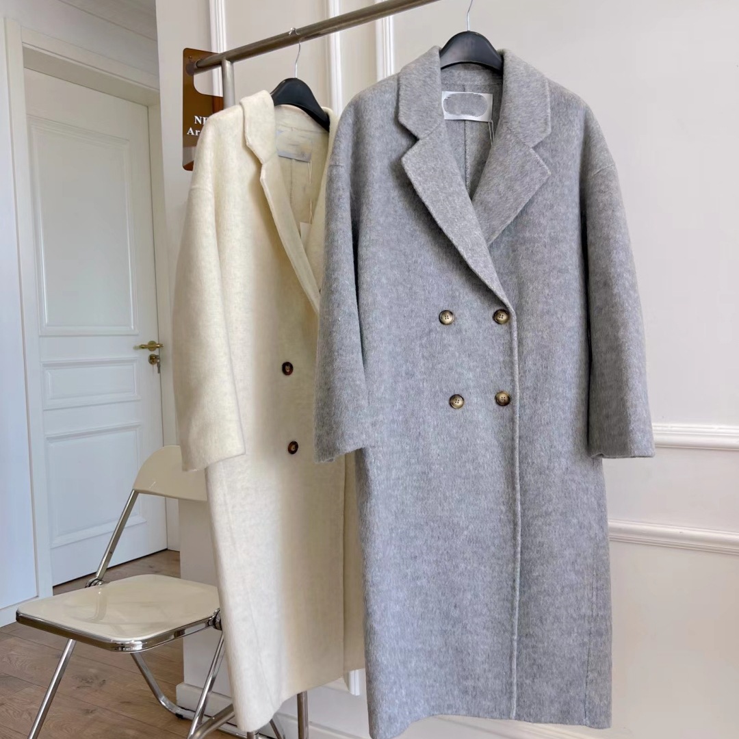 Áo khoác len hai mặt nữ dáng dài trung thu đông mới phong cách Hàn Quốc Áo khoác len mỏng dáng rộng B062604