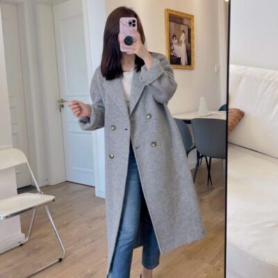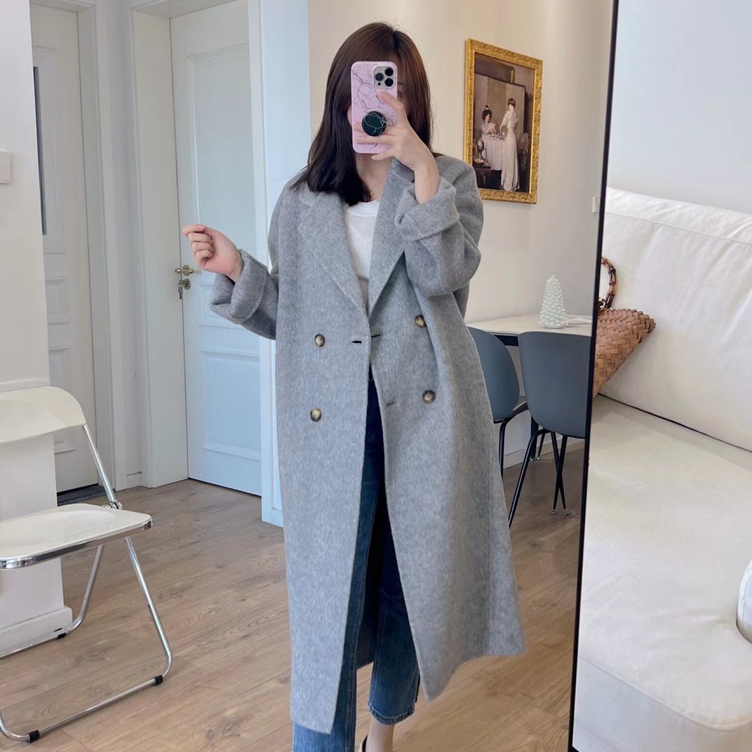 Áo khoác len hai mặt nữ dáng dài trung thu đông mới phong cách Hàn Quốc Áo khoác len mỏng dáng rộng B062604