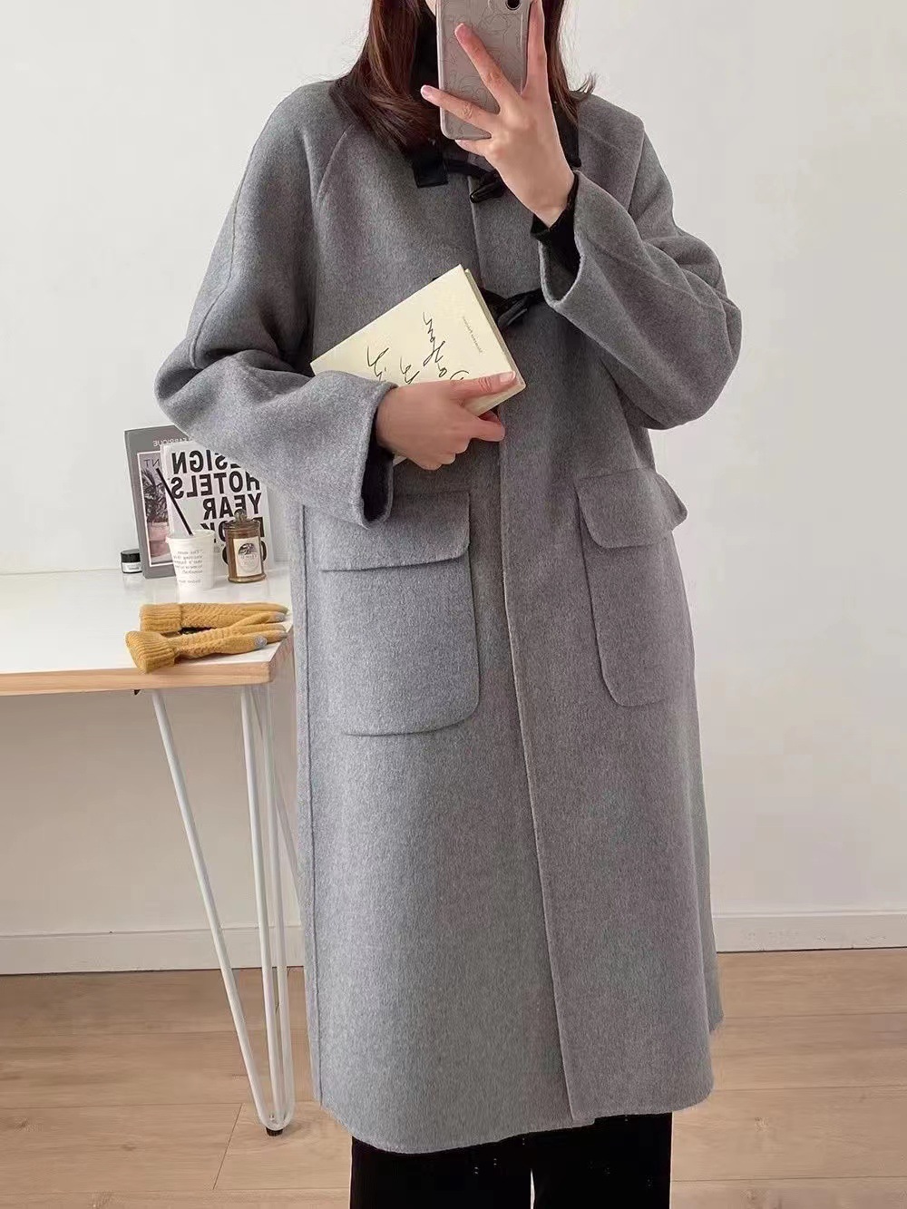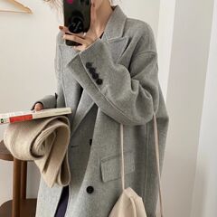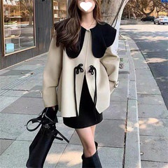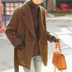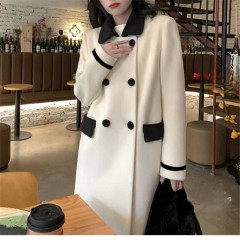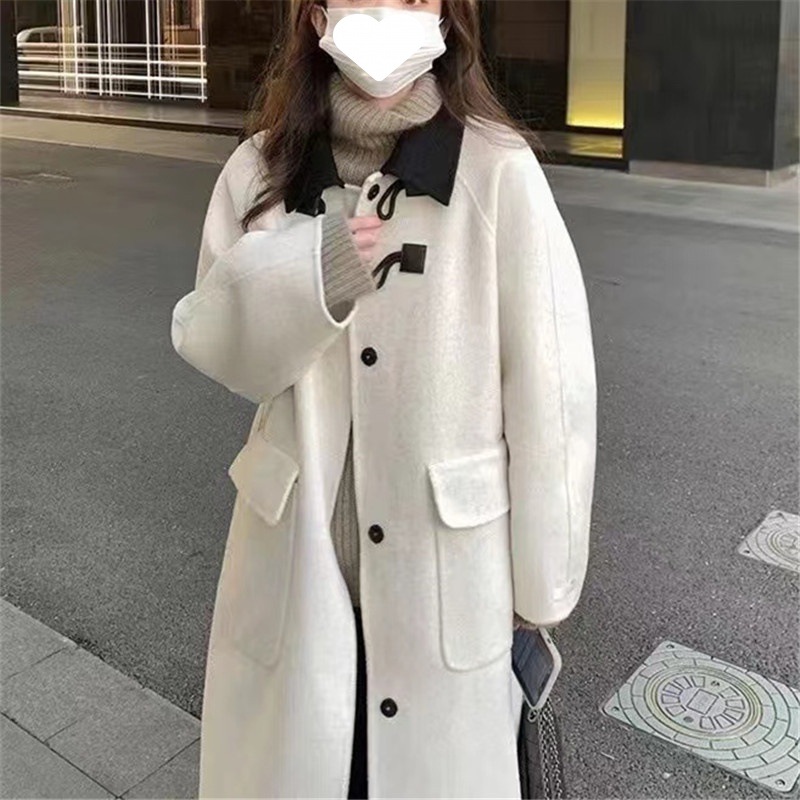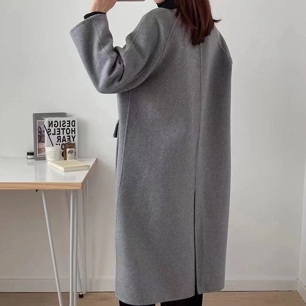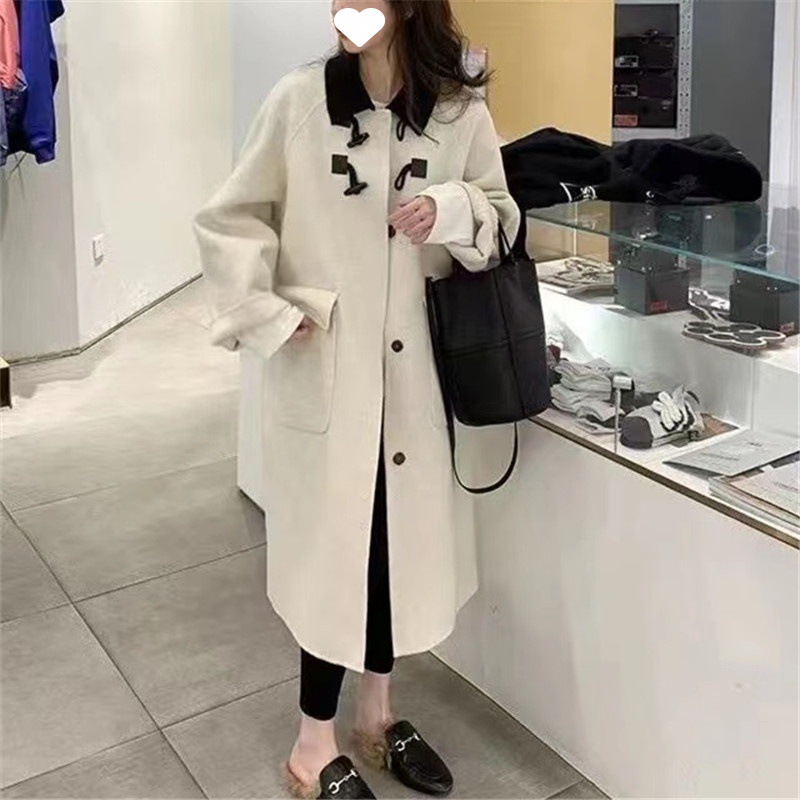 Áo khoác len hai mặt phong cách Hàn Quốc mùa thu đông nữ phong cách nước ngoài khóa dày phong cách Hepburn áo khoác ngoài