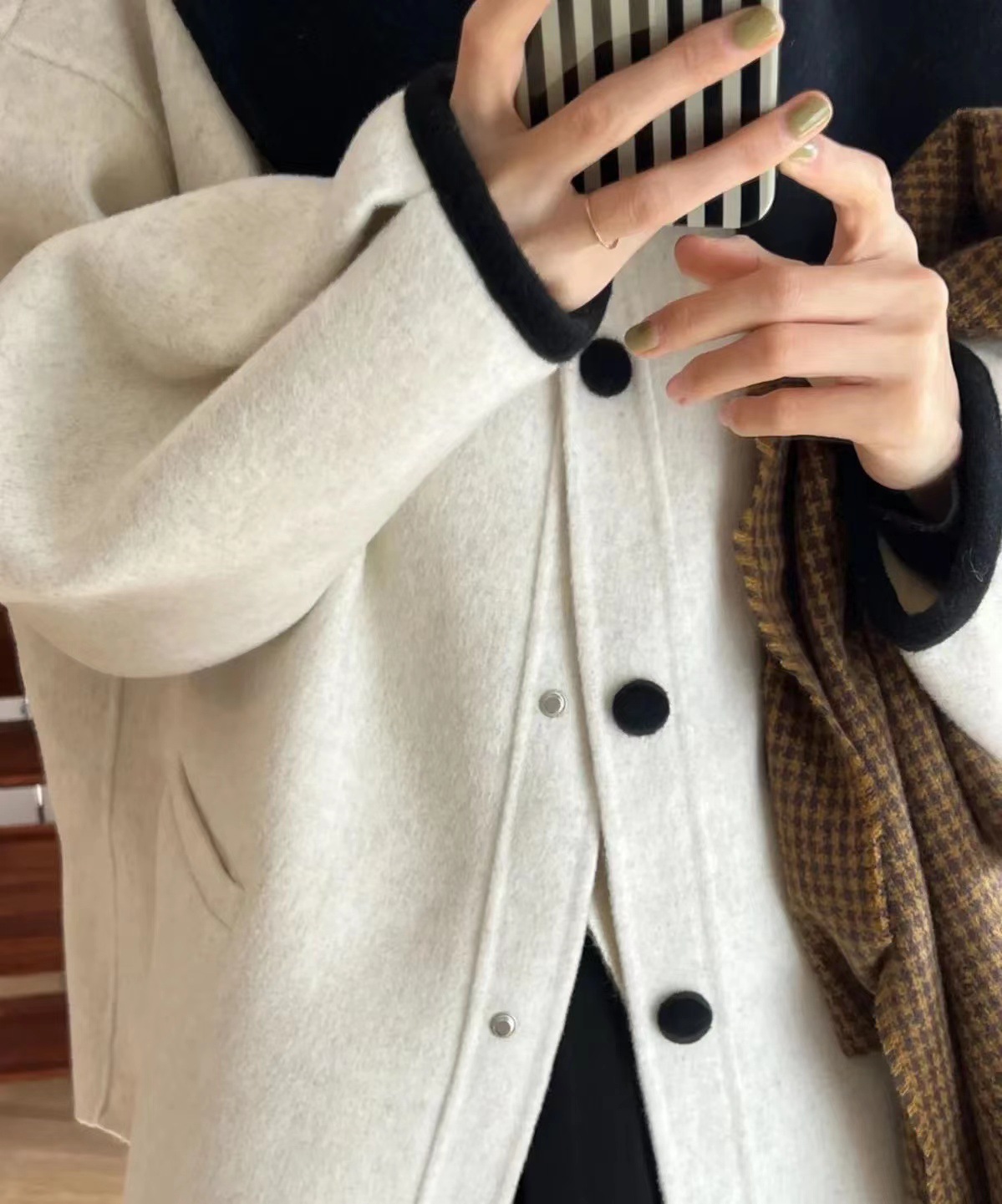 Áo khoác len hai mặt phong cách Hàn Quốc mùa thu đông nữ phong cách nước ngoài khóa dày phong cách Hepburn áo khoác ngoài
