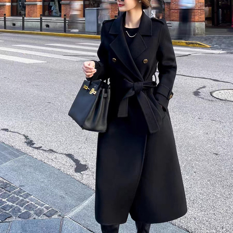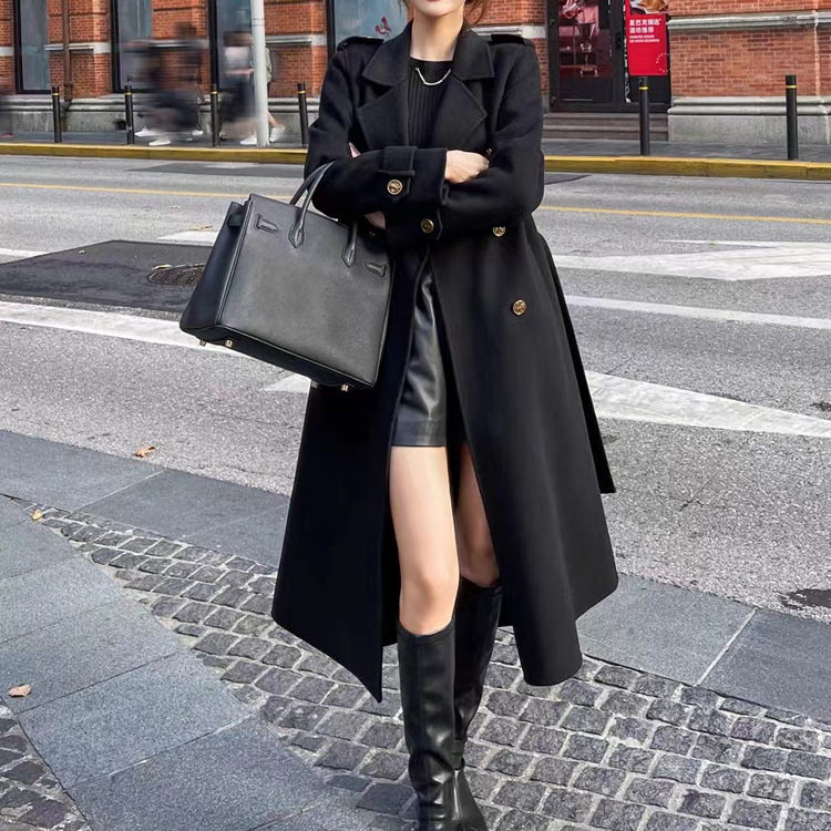 Áo khoác len Hàn Quốc cao cấp nữ 2023 dáng ôm dáng dài áo khoác cashmere 2 mặt dáng vừa