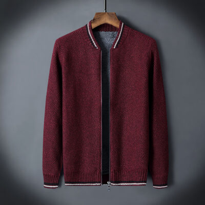 Áo khoác len nam mùa thu đông cộng với nhung dày phiên bản Hàn Quốc của xu hướng áo ấm áo len cardigan đồng phục bóng chày chống gió