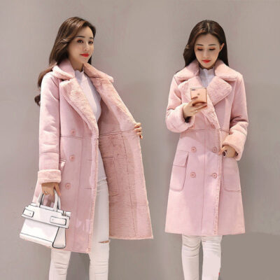 Áo Khoác Len Nữ Áo Khoác Len Cừu Cao Cấp Phong Cách Hàn Quốc Mùa Đông Da Lộn Dài Trung Bình 1 Ve Áo Cotton Cotton Áo Khoác