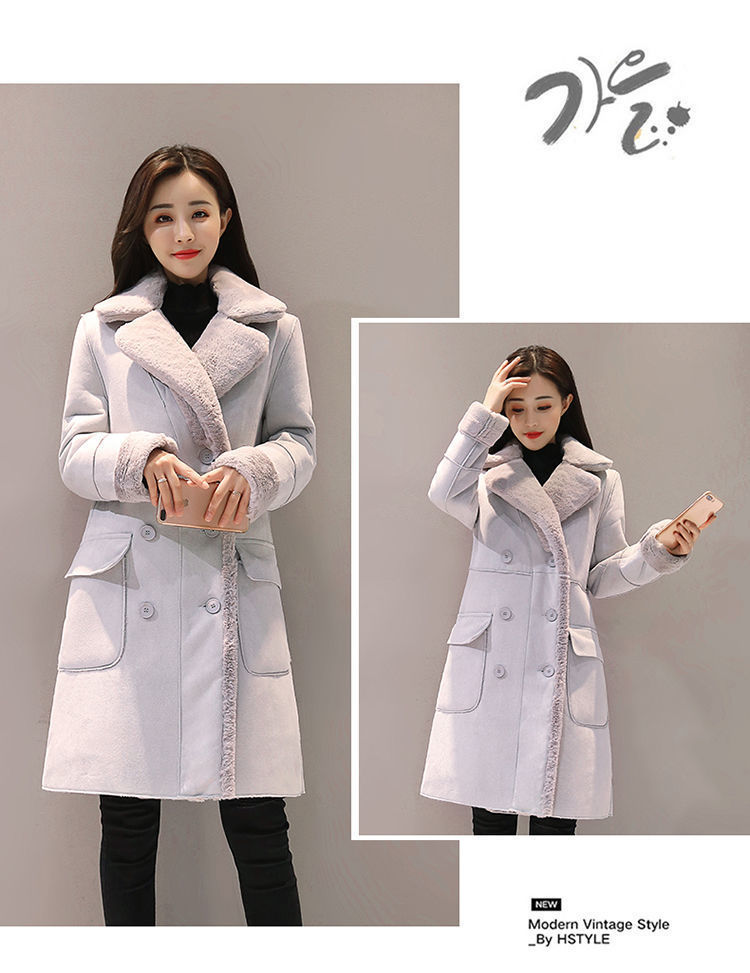 Áo Khoác Len Nữ Áo Khoác Len Cừu Cao Cấp Phong Cách Hàn Quốc Mùa Đông Da Lộn Dài Trung Bình 1 Ve Áo Cotton Cotton Áo Khoác