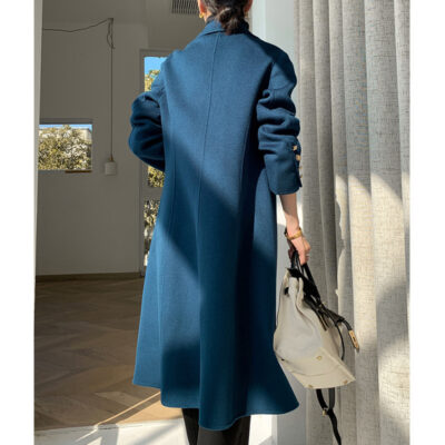 Áo khoác len nữ màu xanh đốm giữa mùa thu đông phiên bản Hàn Quốc của áo khoác len mỏng hai mặt