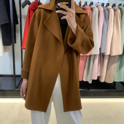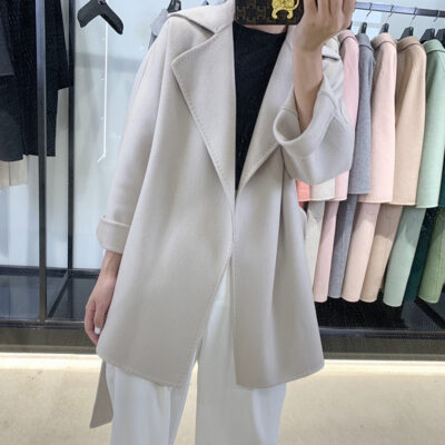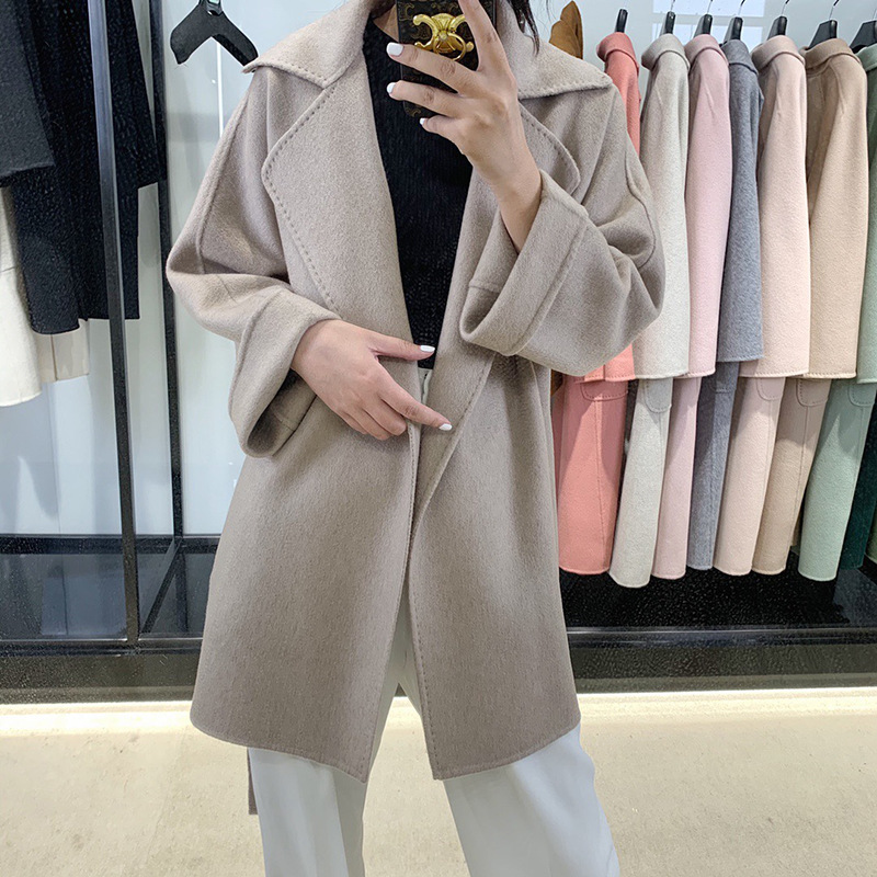 Áo khoác len nữ mùa thu đông 2023 mới nhỏ dài vừa rộng phong cách Hepburn len cashmere 2 mặt