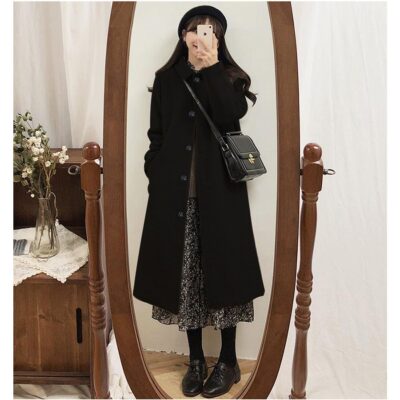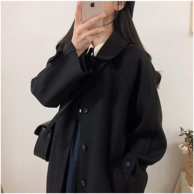 Áo khoác len nữ nhỏ mới hợp mốt thu đông áo khoác len đen phong cách hàn quốc hợp mốt