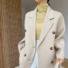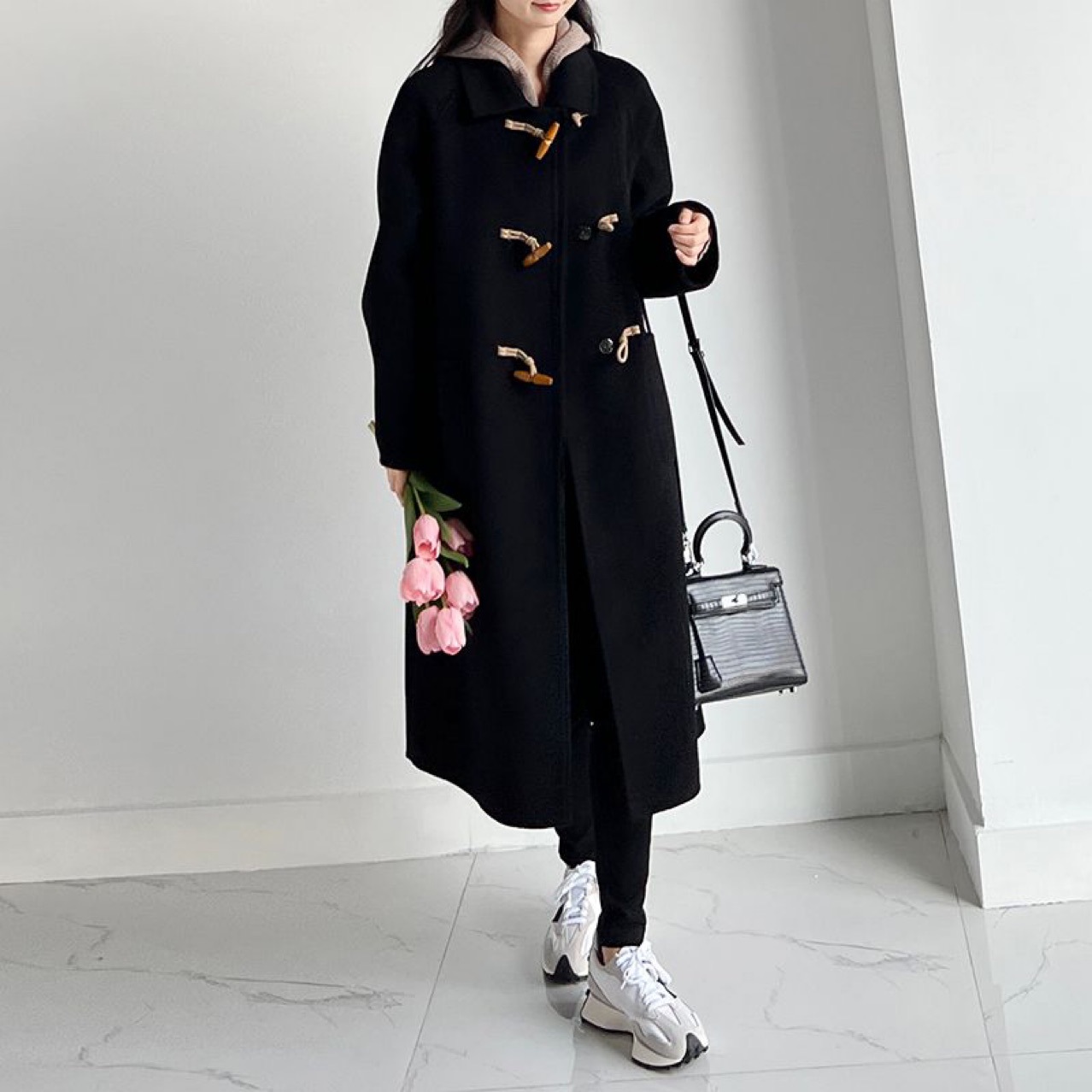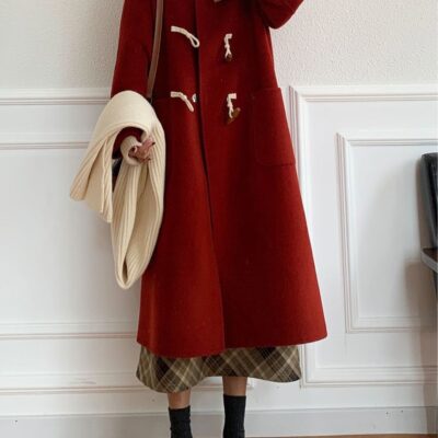 Áo khoác len nút sừng đỏ cho nữ nhỏ mùa xuân 2023 trung dài phong cách đại học áo khoác len dày