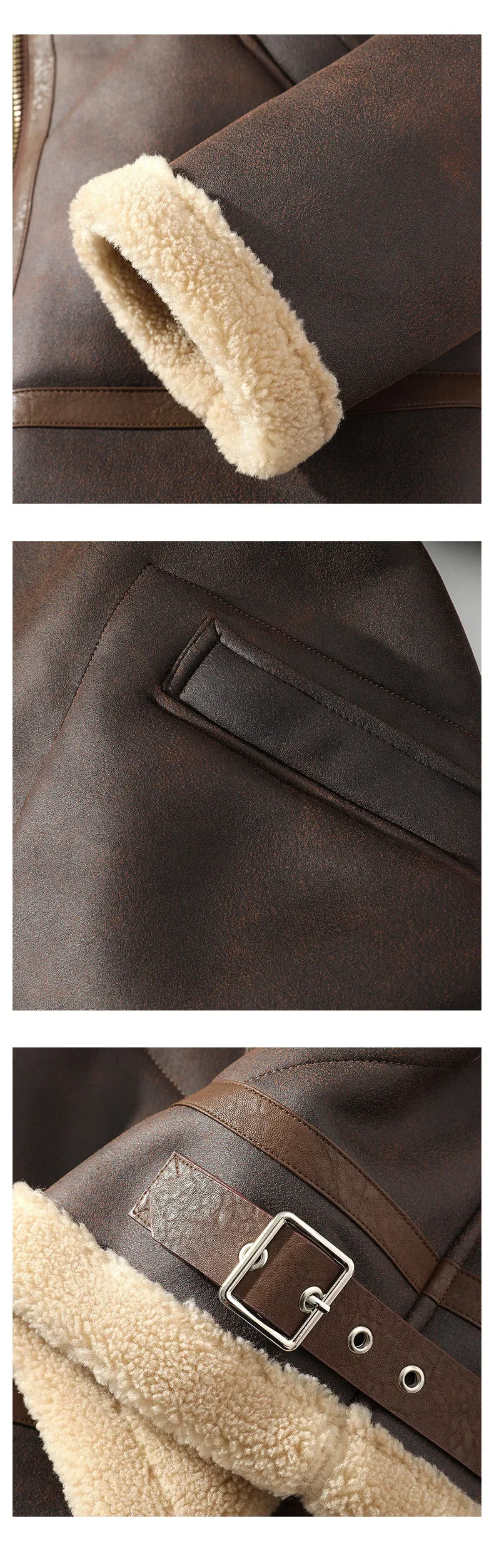 Fur Leather Bomber Jacket Men Winter Warm Coats Velvet Suede Large Size Air Force Thick Lapel Brand Fashion PU Motorcycle Jacket
