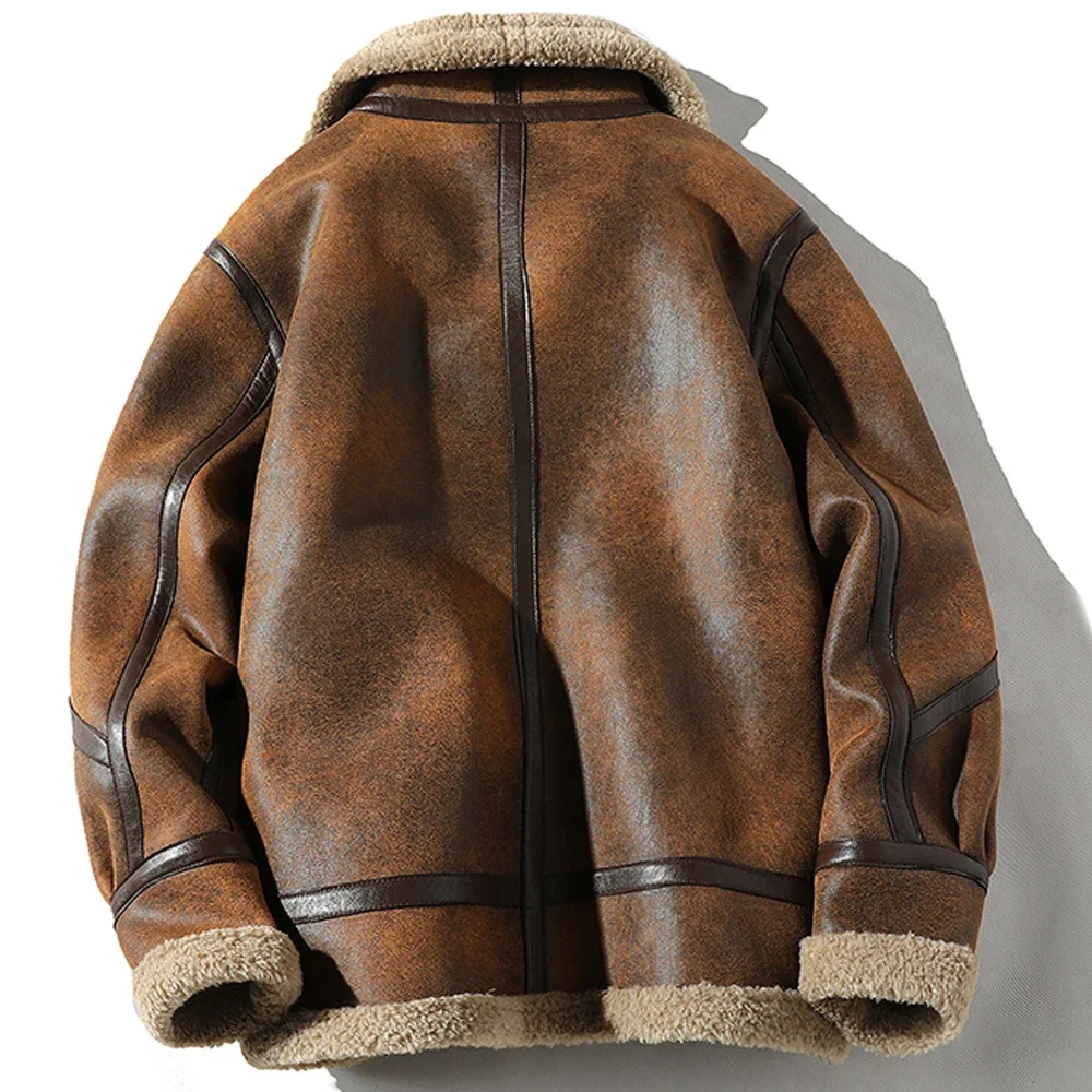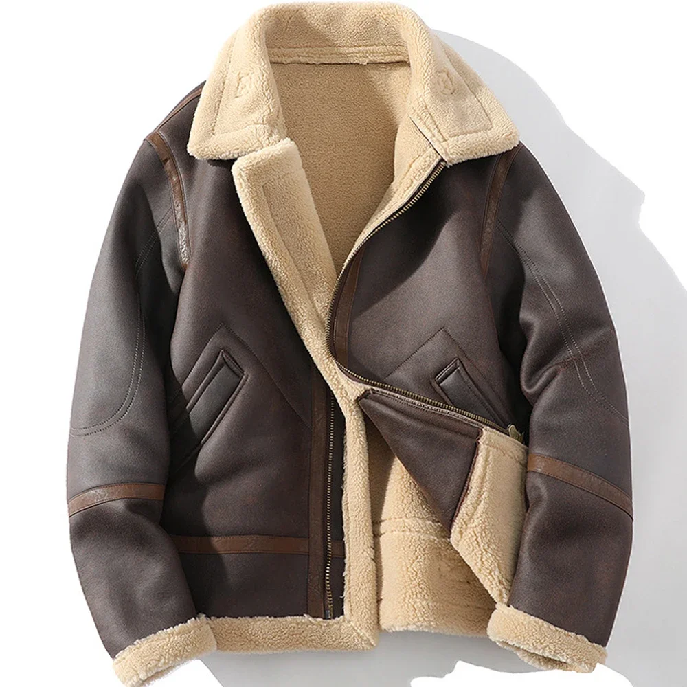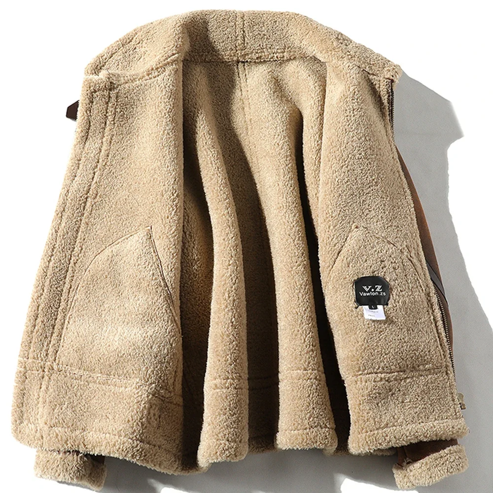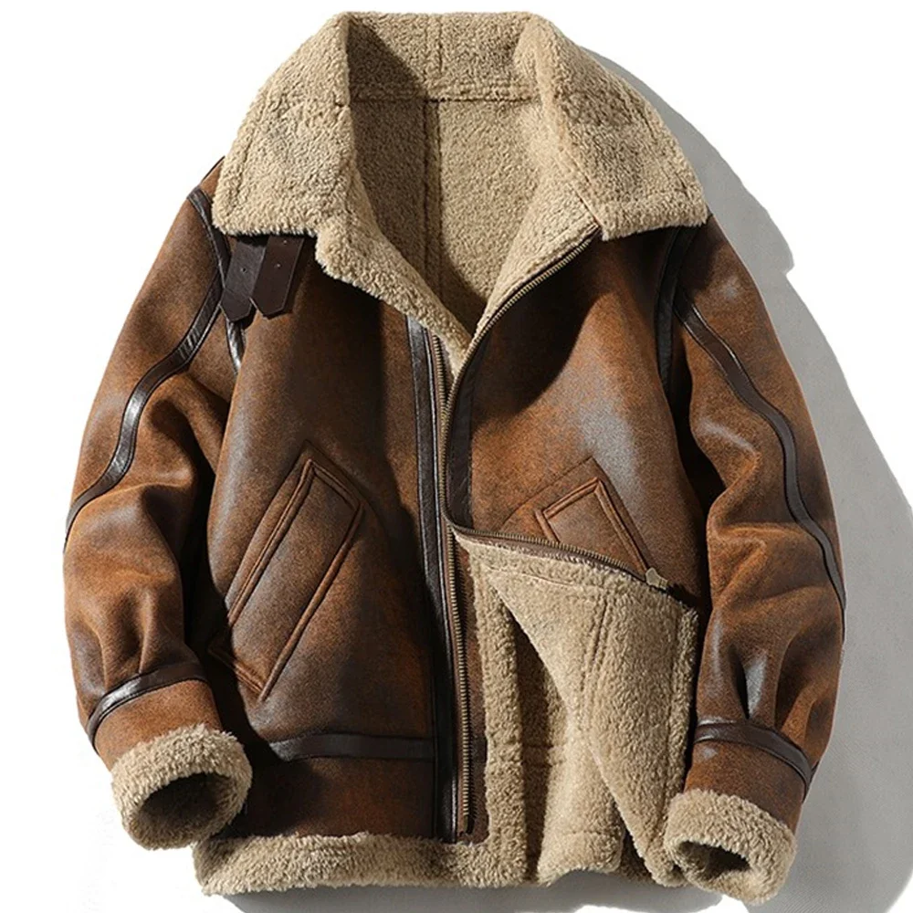Fur Leather Bomber Jacket Men Winter Warm Coats Velvet Suede Large Size Air Force Thick Lapel Brand Fashion PU Motorcycle Jacket