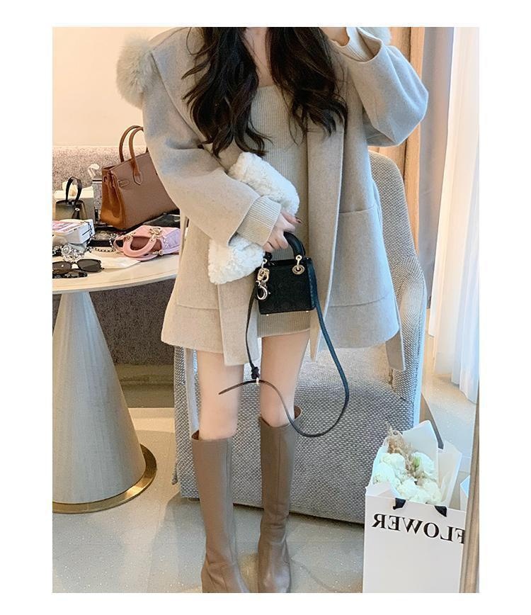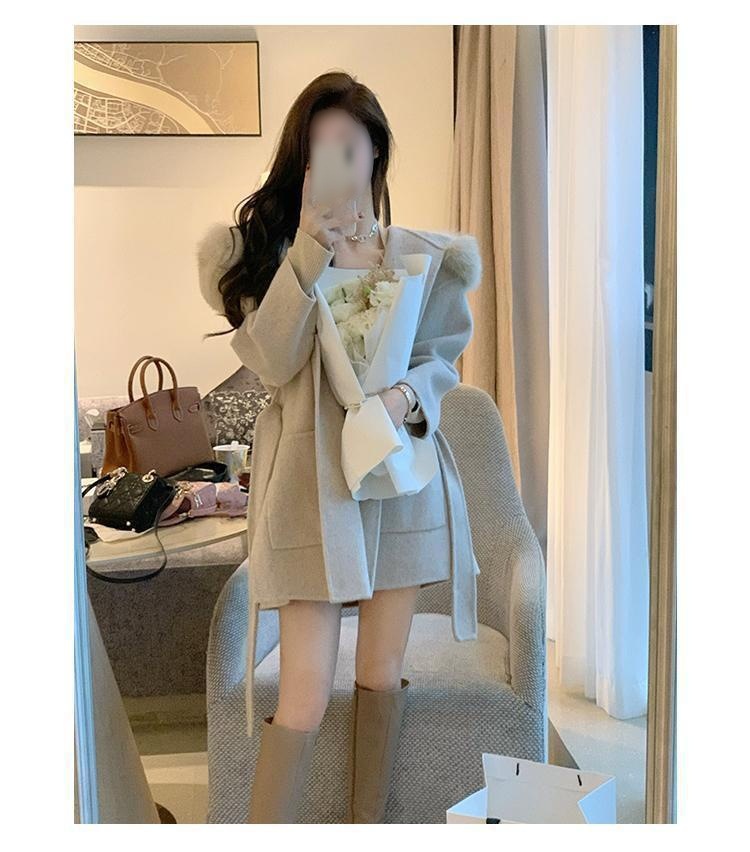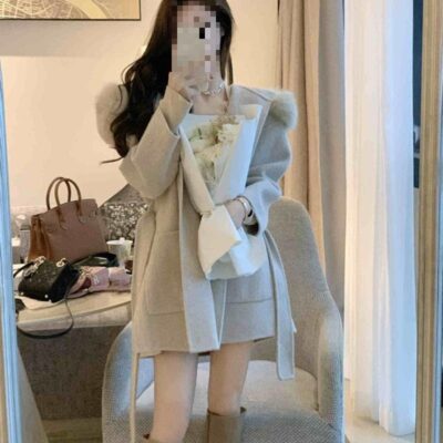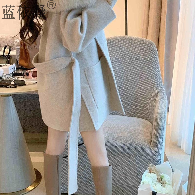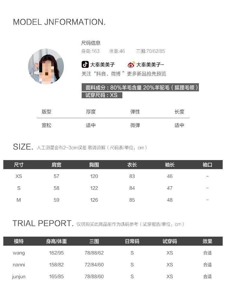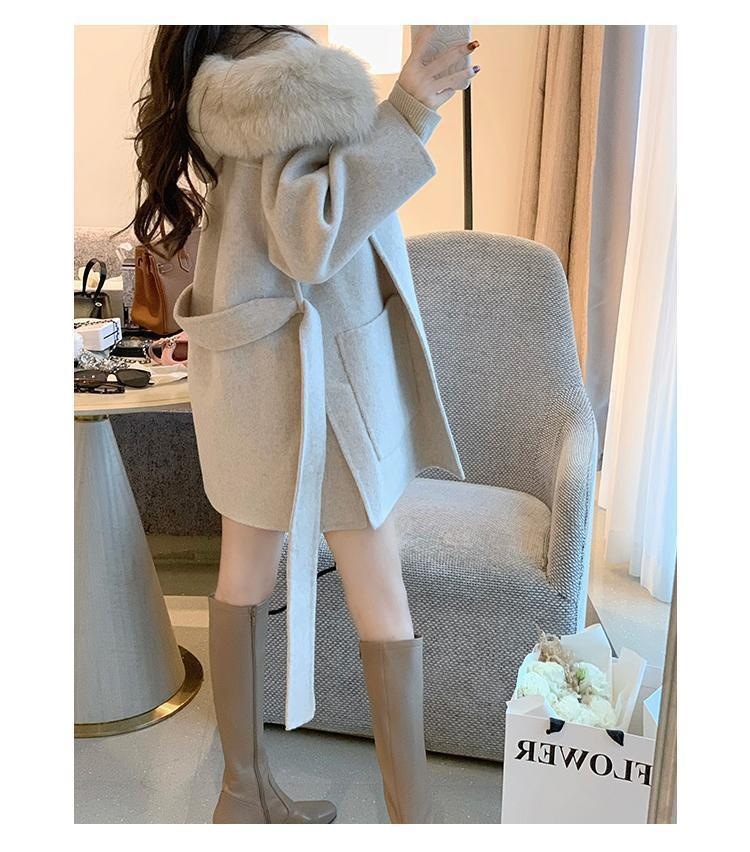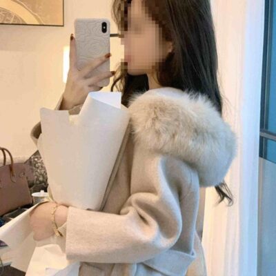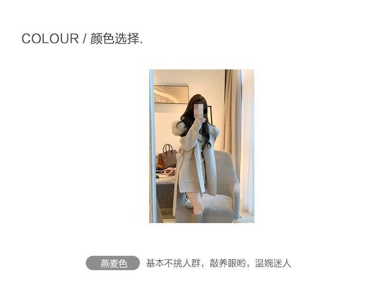 Áo khoác lông yêu tinh Iceland cổ lông lớn xuân thu áo khoác len hai mặt xuyên biên giới