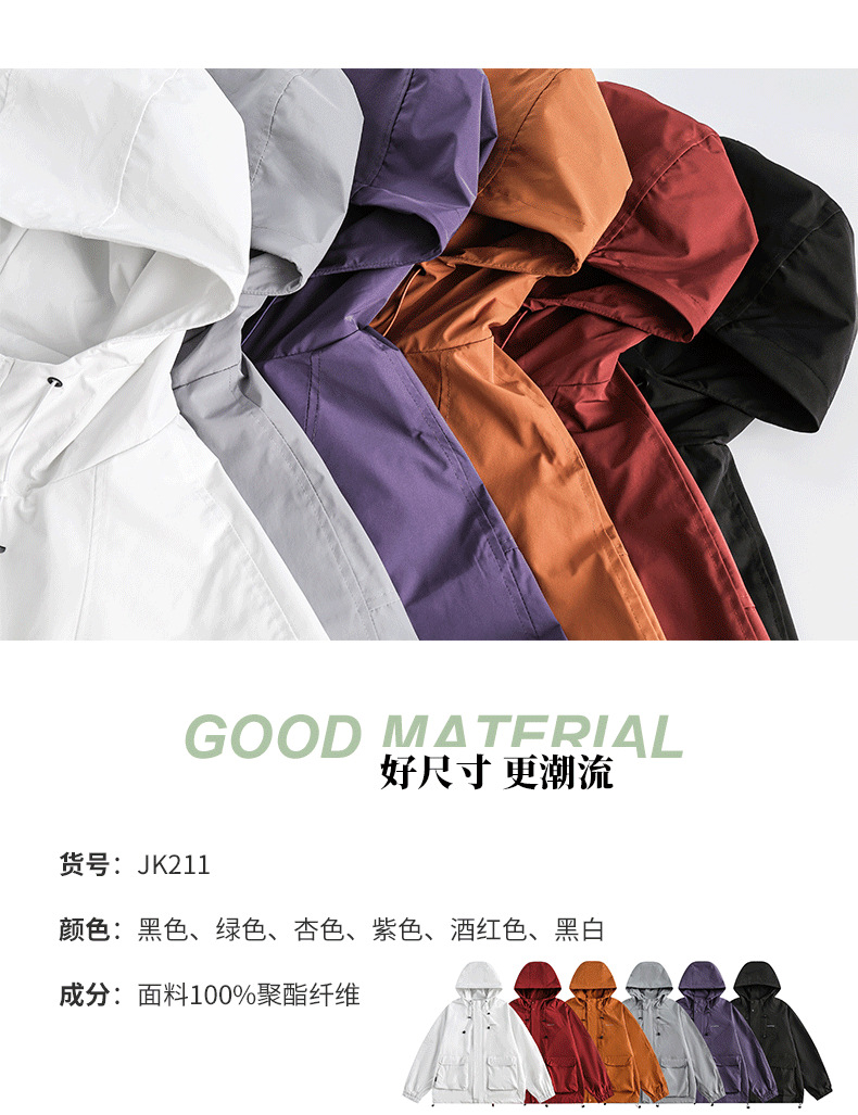 Hoa văn: Phối màu Nguồn Loại: Túi may mặc tại chỗ Phong cách: Túi đào có khóa kéo Chất liệu Chức năng: Thoáng khí/Không thấm nước/Chống gió/Chống gió Danh mục sản phẩm: Áo khoác Màu sắc: Màu be/Xanh quân đội/Đen/Đen trắng/Đỏ rượu/Tím/Tím Chất liệu vải chính Số lượng thành phần: 100 Hàng tồn kho: Có hoặc không Báo cáo kiểm tra chất lượng: Không Thích hợp cho đối tượng: Thanh niên Kích thước: S/M/L/XL/XXL/XXXL/XXXL Phiên bản: Loại rộng Danh mục mua sắm: Quý ông công sở (trên 35 tuổi) Thành phần lớp lót: Sợi polyester (polyester) Hàm lượng thành phần lớp lót: 100 Loại cổ áo: Không cổ Nguồn cung cấp đặc biệt xuất khẩu xuyên biên giới: Không Độ dày: Mỏng Thương hiệu: Khác Mã sản phẩm: JK211 Tên vải: Cotton Mặt trước: Dây kéo Loại tay áo: Tay áo thông thường Thành phần vải chính: Sợi polyester (Polyester) Số báo cáo kiểm tra chất lượng: Không có Chiều dài: Thông thường Giới tính áp dụng: Nam Có mũ trùm đầu hoặc không: Có mũ trùm đầu Phương pháp mặc: Áo khoác ngoài Mùa phù hợp: Mùa xuân và mùa thu Chiều dài tay áo: Dài tay Chi tiết kiểu dáng: Quần áo in Thiết kế viền: Đường viền thẳng Phong cách: Thiết kế gốc của Nhật Bản Nguồn: Không Quy trình: Xử lý không ủi