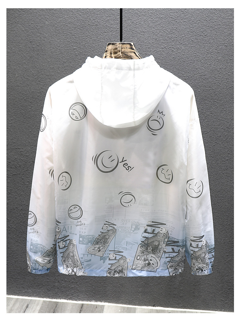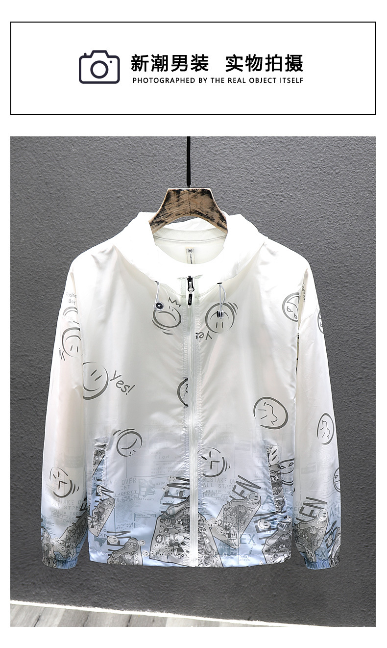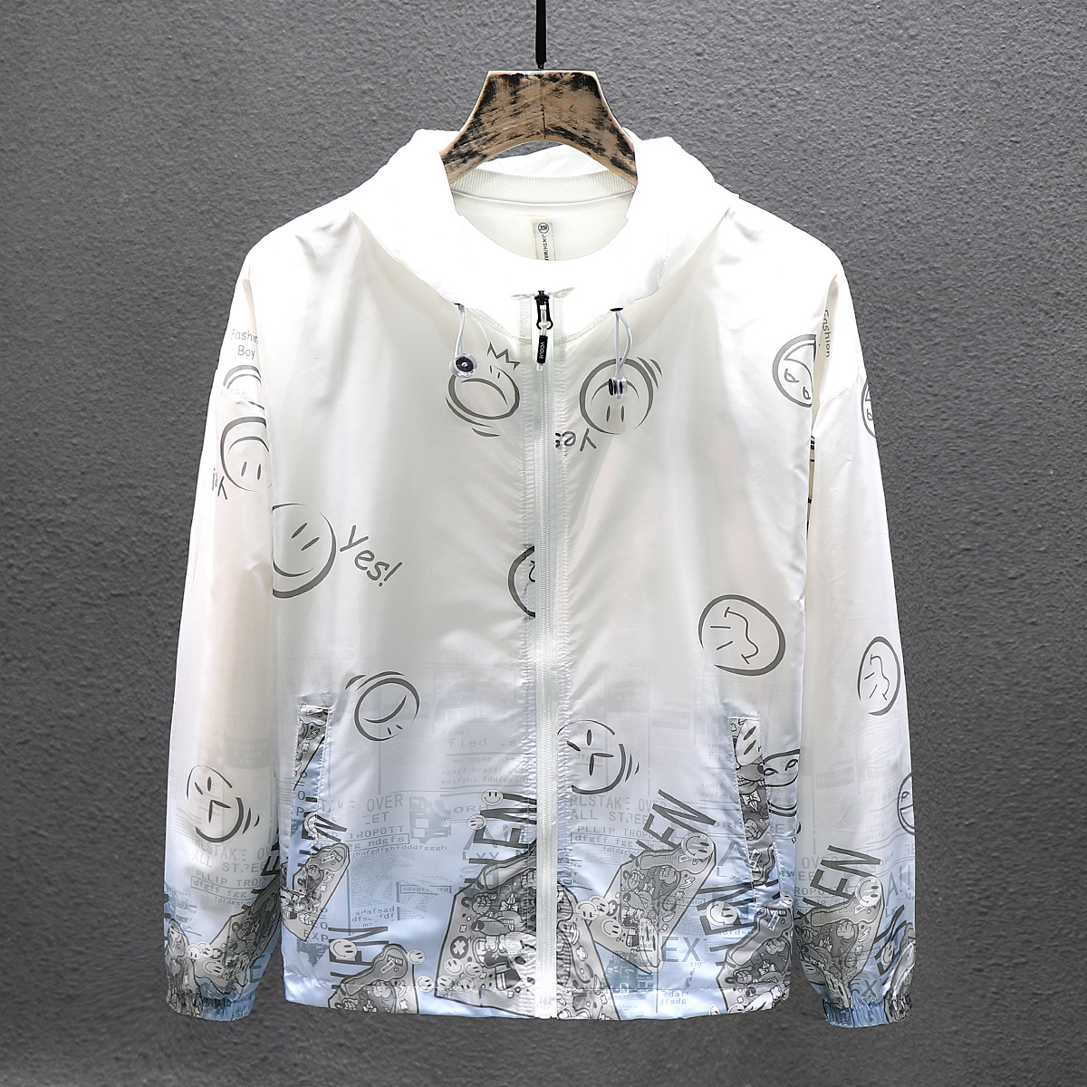 Áo khoác mỏng và nhẹ thương hiệu thời trang mùa hè cho nam Áo khoác nam in hình có mũ trùm đầu bằng lụa băng khô nhanh tay dài xu hướng mới