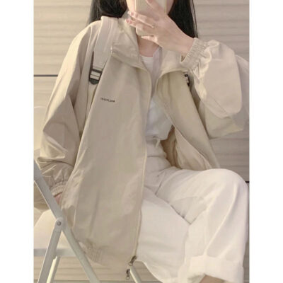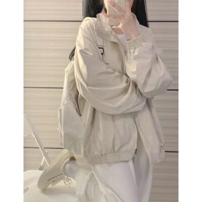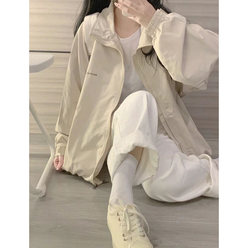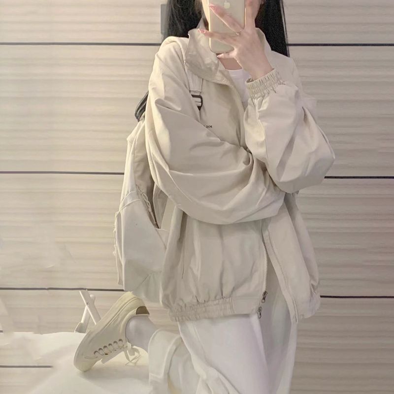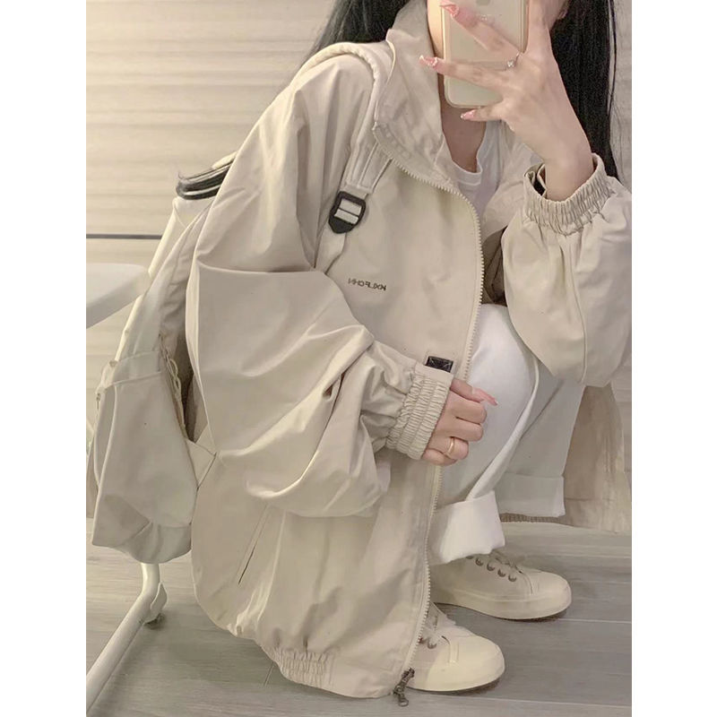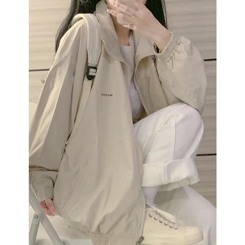 Áo khoác mùa xuân nữ màu xám nhạt áo gió nữ sinh mùa thu dáng rộng cổ tất cả các trận đấu áo khoác áo khoác áo khoác bán buôn
