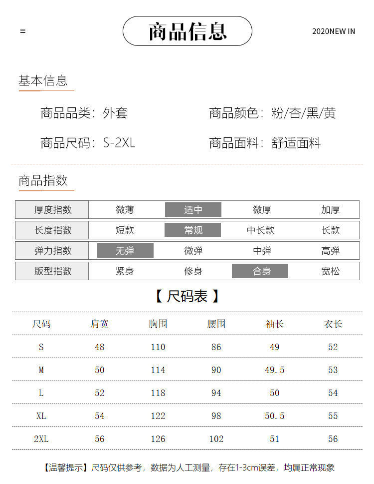Hoa văn: Màu trơn Độ dày: Mỏng Mã sản phẩm: E2dy5txS Thương hiệu: Lizhu Tên vải: Spandex Màu sắc: Mơ [có lớp lót vào mùa xuân và mùa thu] 5967#/vàng [có lớp lót vào mùa xuân và thu] 5967#/hồng [có lớp lót trong mùa xuân và mùa thu] 5967#/đen [có lớp lót vào mùa xuân và mùa thu] 5967#/quả mơ [được làm dày bằng bông] 5979#/màu vàng [được làm dày bằng bông] 5979#/hồng [được làm dày bằng bông] 5979#/đen [được thêm vào cotton] Dày] 5979#/Đen [cotton và dày] 5979# Danh mục sản phẩm: Áo khoác Loại tay áo: Thông thường Túi: Khác Cho dù Nguồn xuyên biên giới: Không Kích thước: S [khuyến nghị 70-90 kg]/M [khuyến nghị 90-100 kg 】/L [khuyến nghị 100-110 kg]/XL [khuyên dùng 110-120 kg]/2XL [khuyến nghị 120-135 kg]/2XL [khuyến nghị 120-135 kg] Phiên bản: Khác Chiều dài: Khác Giới tính áp dụng: Nữ Loại phong cách : Khí chất đi lại Nhóm tuổi áp dụng: Người lớn Năm/mùa niêm yết: Mùa hè 2023 Hình thức kết hợp: Một mảnh Kiểu cổ áo: POLO Chiều dài dây dẫn: Tay áo dài Yếu tố phổ biến: Hoa văn 3D/ba chiều