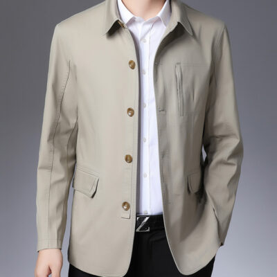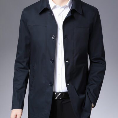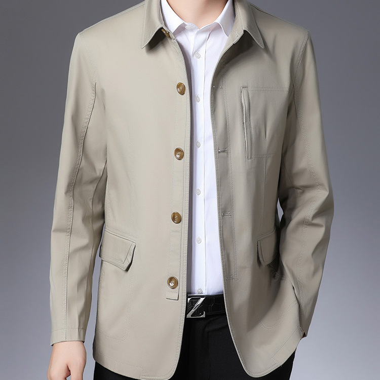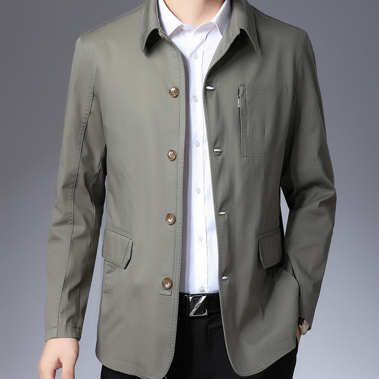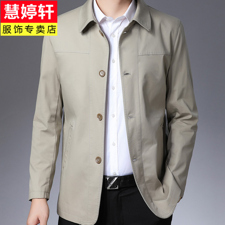 Áo khoác nam áo khoác nam mùa xuân và mùa thu bông nguyên chất áo gió ngắn kinh doanh bình thường cho người trung niên và người già bố áo khoác nam