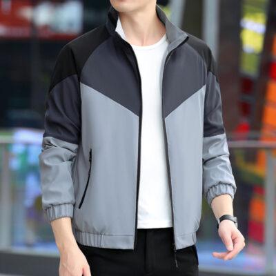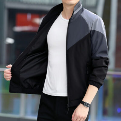 Áo khoác nam cổ bẻ mỏng kết hợp màu sắc xuân thu phong cách Hàn Quốc hợp thời trang thể thao đẹp trai đi chơi áo khoác nam thường ngày
