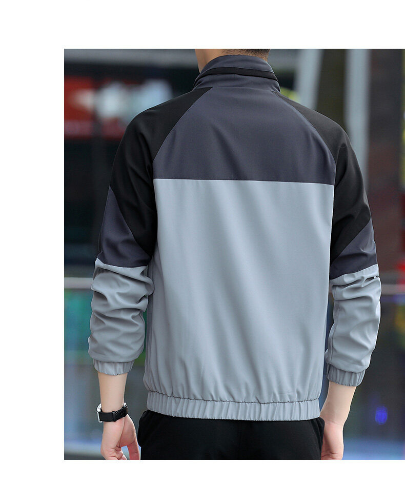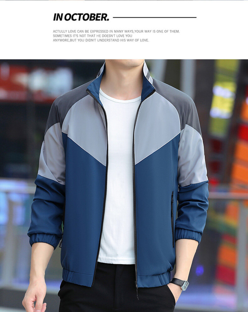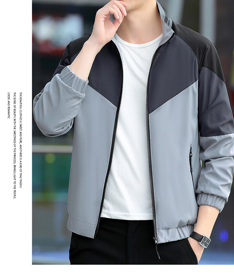 Áo khoác nam cổ bẻ mỏng kết hợp màu sắc xuân thu phong cách Hàn Quốc hợp thời trang thể thao đẹp trai đi chơi áo khoác nam thường ngày
