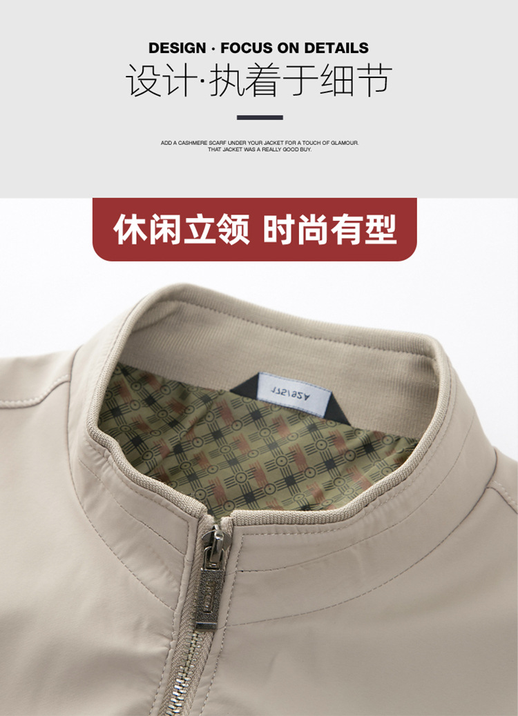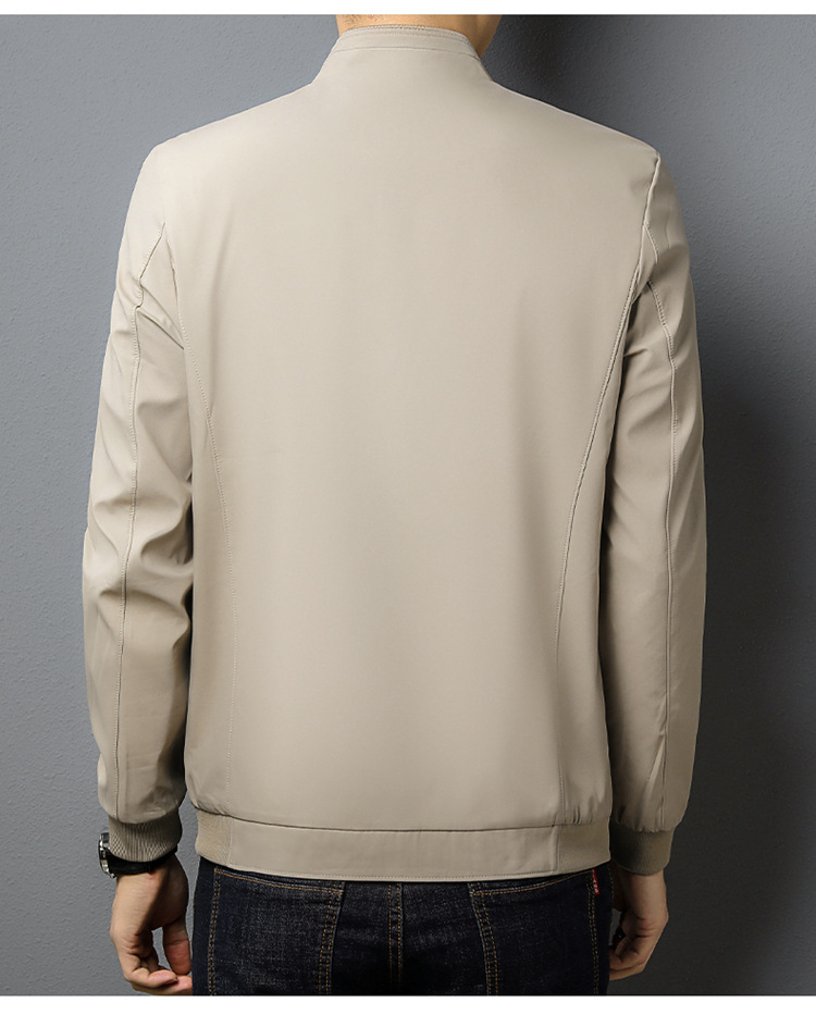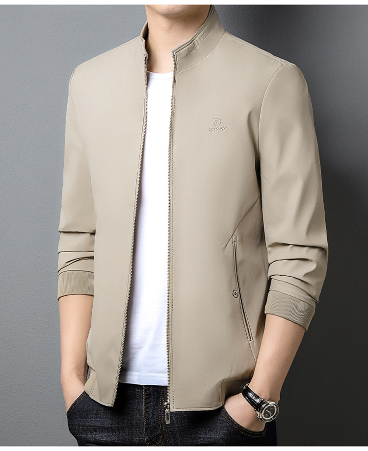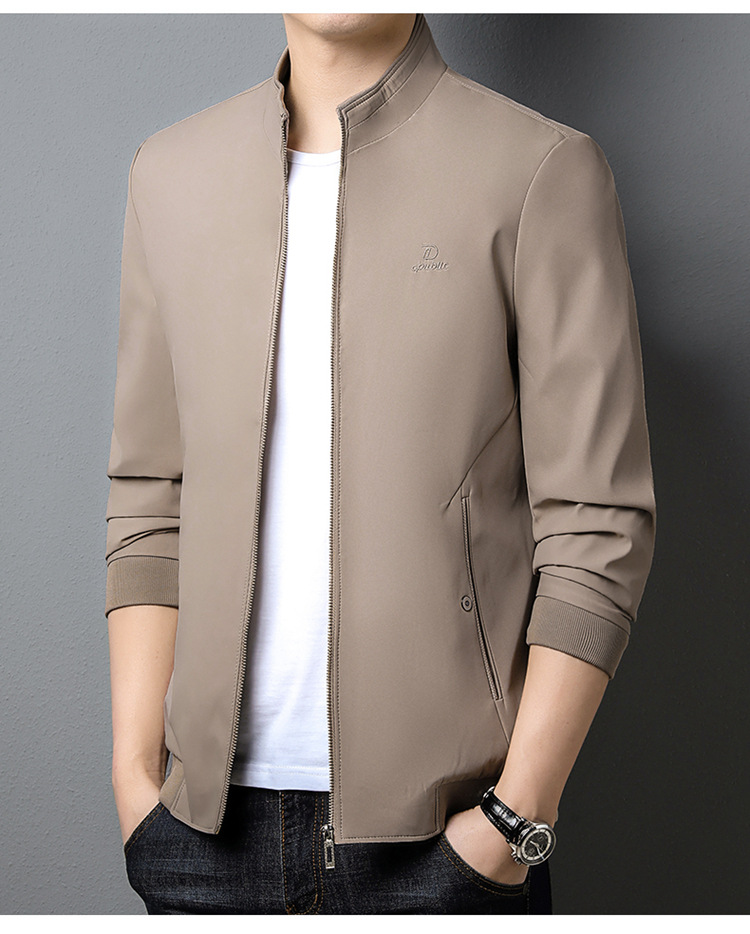 Áo khoác nam cổ đứng phong cách mới mùa xuân và mùa thu áo khoác thêu chữ áo khoác trung niên và người cao tuổi trang phục công sở bình thường cho bố