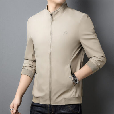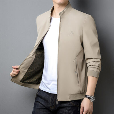 Áo khoác nam cổ đứng phong cách mới mùa xuân và mùa thu áo khoác thêu chữ áo khoác trung niên và người cao tuổi trang phục công sở bình thường cho bố