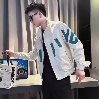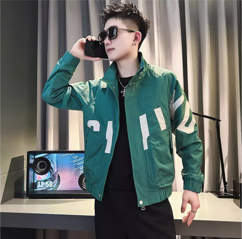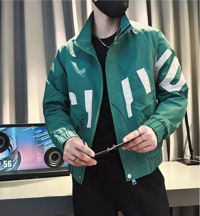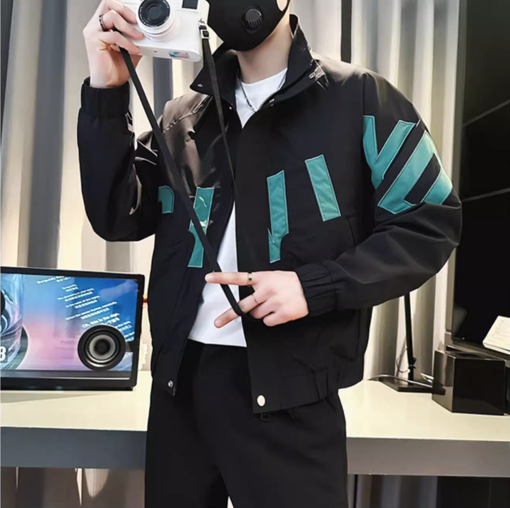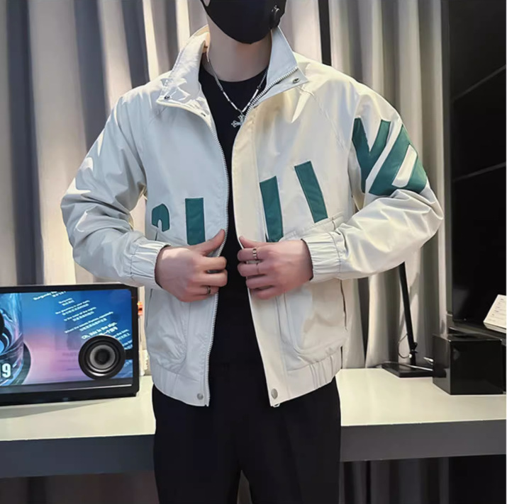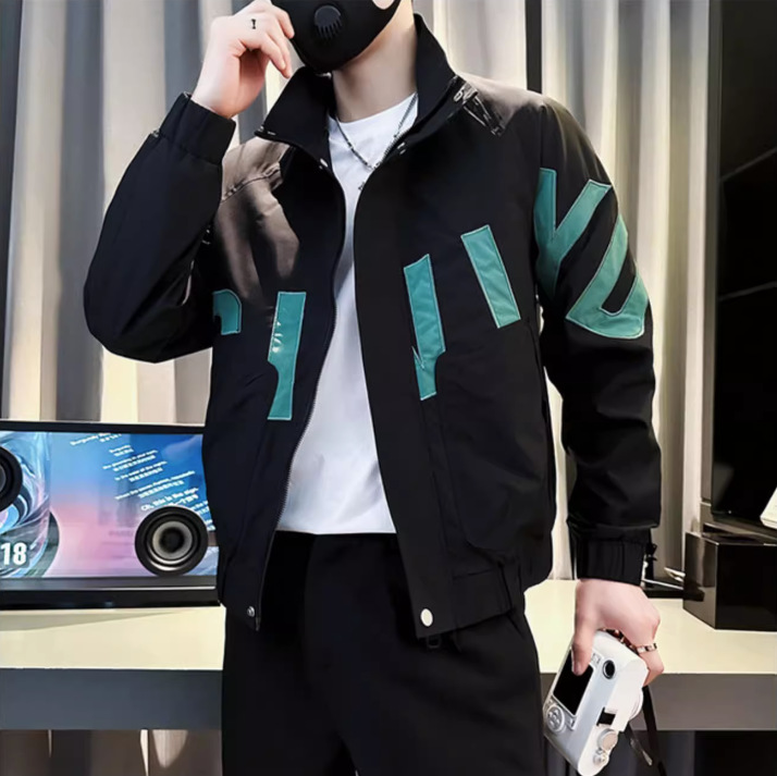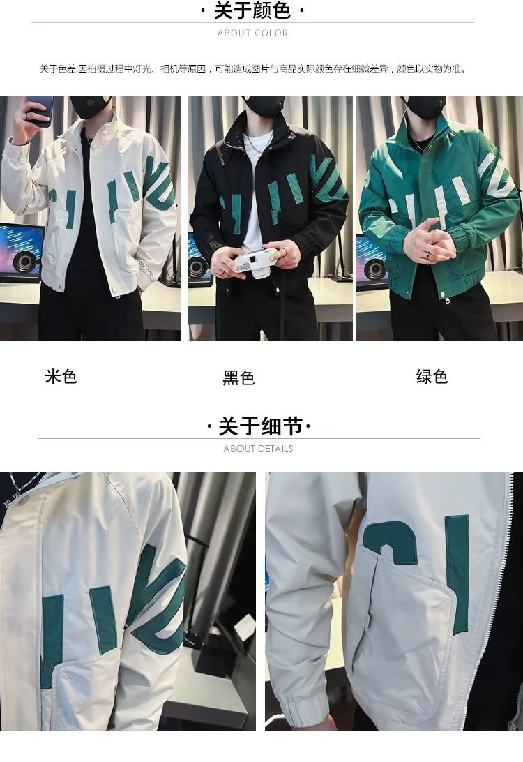 Áo khoác nam đẹp trai của kẻ lưu manh mùa xuân và mùa thu áo choàng đẹp trai của kẻ lưu manh quần áo hàng đầu cho nam 2023 thương hiệu hợp thời trang mới màu tương phản áo khoác cổ đứng