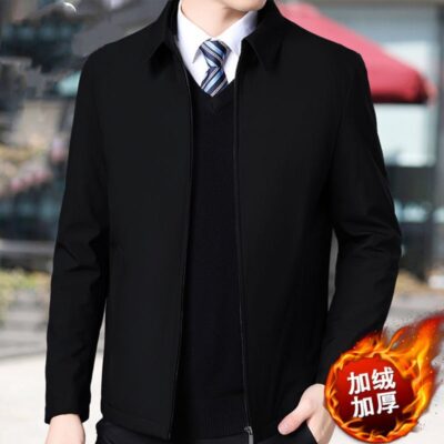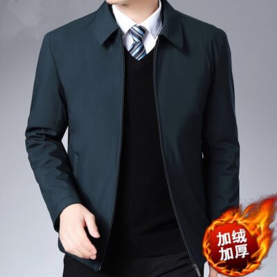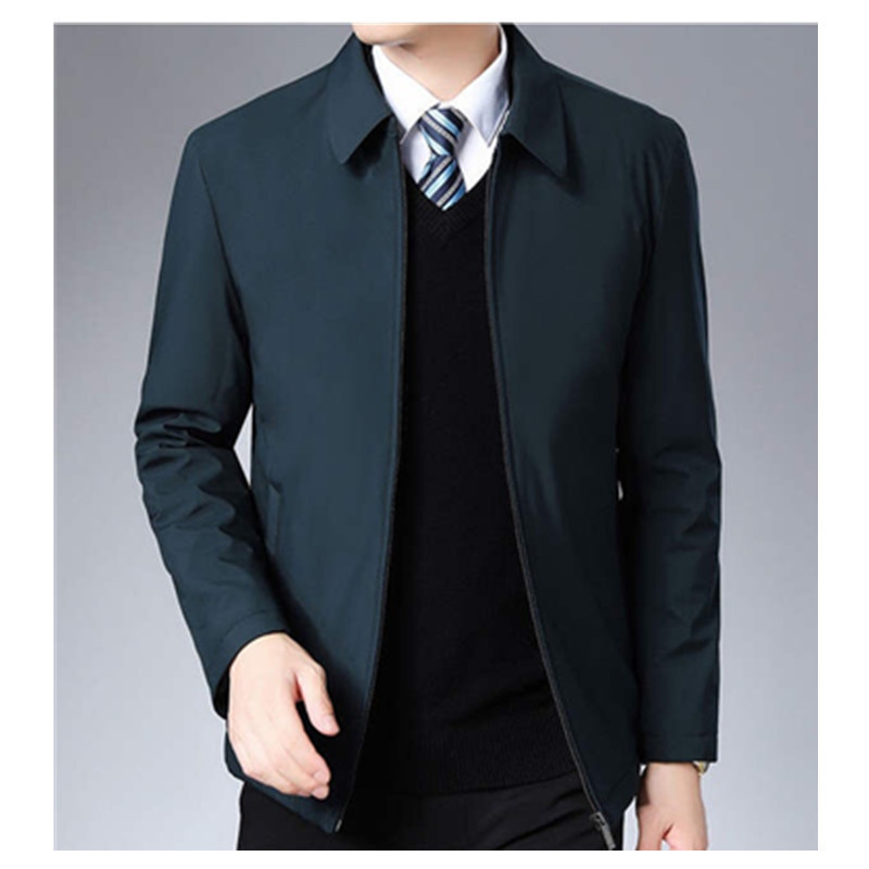 Áo khoác năm mới áo khoác nam mùa xuân và mùa thu mới kinh doanh bình thường áo khoác cổ đứng phần mỏng bố áo gió trung niên và người già