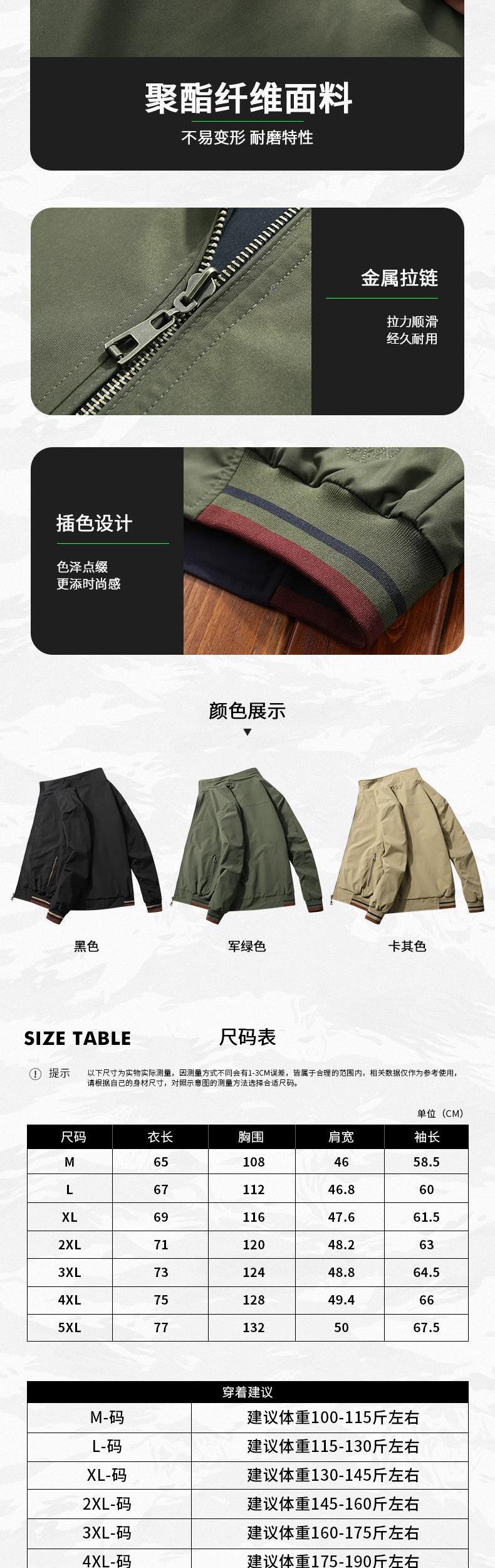 Hoa văn: Màu trơn Nguồn Danh mục: Túi may mặc tại chỗ Phong cách: Túi đào có khóa kéo Chất liệu Chức năng: Chống mài mòn Danh mục sản phẩm: Áo khoác Màu sắc: Khaki/Đen/Xanh quân đội/Xanh quân đội Nội dung thành phần vải chính: 100 Cho dù trong kho: Có Báo cáo: Có Thích hợp cho đối tượng: trung niên Kích thước: M/L/XL/2XL/3XL/4XL/5XL/5XL Phiên bản: loại rộng) Thành phần lớp lót: 100 Loại cổ áo: ve áo có phải là nguồn cung cấp độc quyền xuất khẩu xuyên biên giới hay không : Có Thành phần vải chính của tay áo: sợi polyester (polyester) Chiều dài: kiểu thông thường (50cm