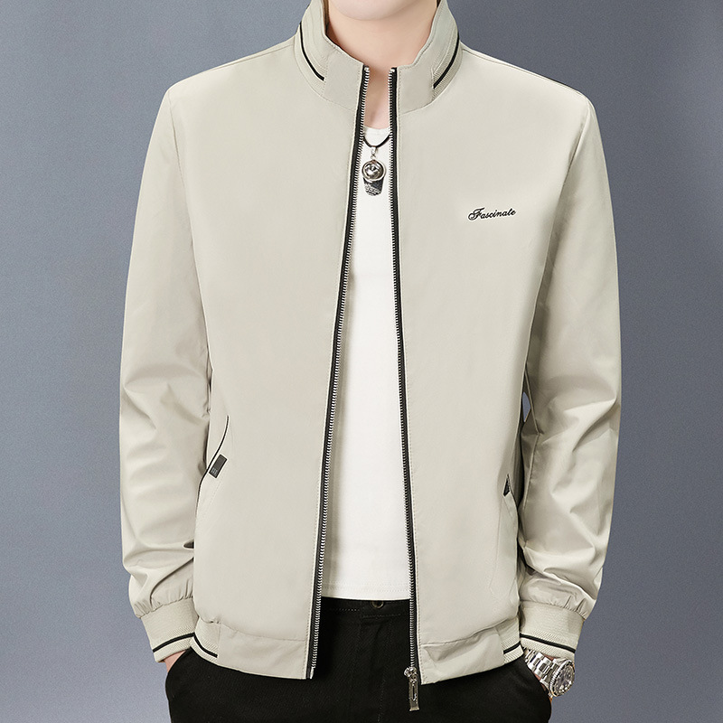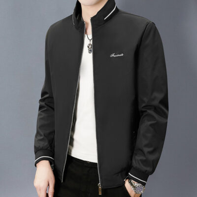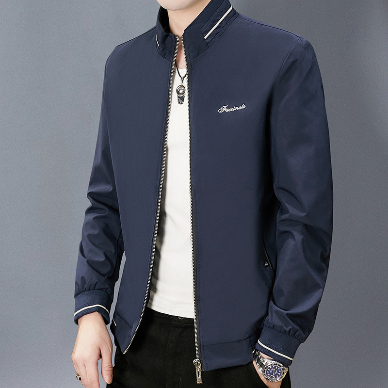 Áo khoác nam mùa xuân mới hợp thời trang thương hiệu áo khoác nam trung niên giản dị cổ áo đứng cao cấp nặng áo khoác nam