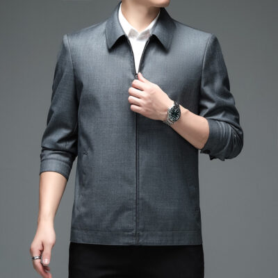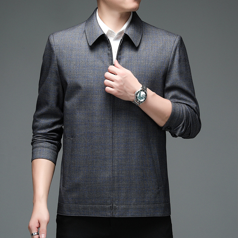 Áo khoác nam mùa xuân và mùa thu 2023 sản phẩm mới áo khoác trung niên quần áo của bố áo khoác cao cấp bằng len quần áo nam trung niên
