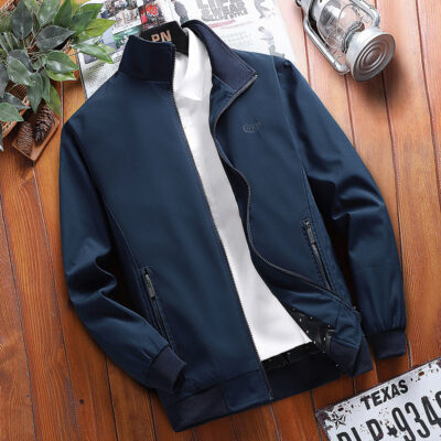 Áo khoác nam mùa xuân và mùa thu áo khoác cổ đứng dáng rộng giản dị cộng với nhung dày áo khoác nam trung niên đồng phục bóng chày nam