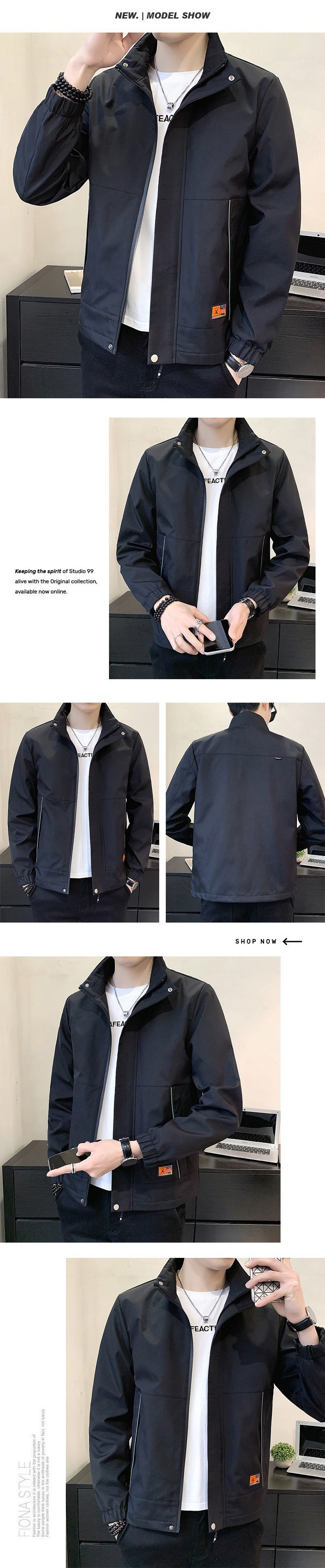 Áo khoác nam mùa xuân và mùa thu Áo khoác nam mùa xuân và mùa thu mới phong cách Hàn Quốc Áo khoác cổ đứng mỏng hợp thời trang Áo khoác ngoài thông thường Quần áo nam Bán buôn